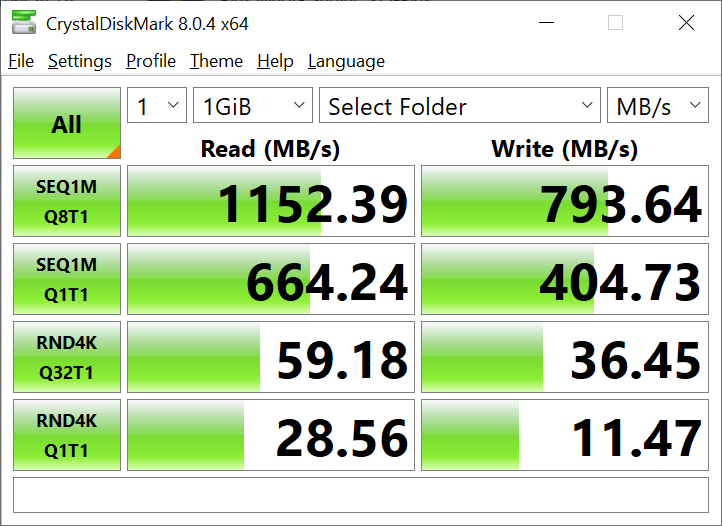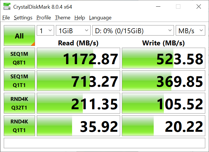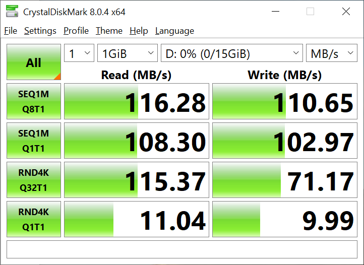 | Seq Read MB/s | Seq Write MB/s | RND Read MB/s | RND Write MB/s | |