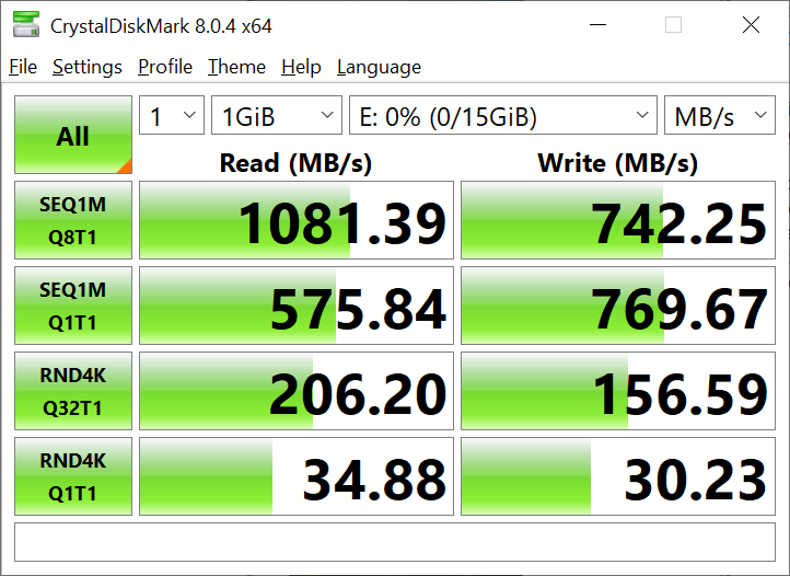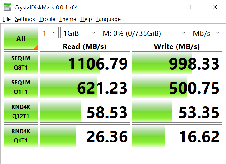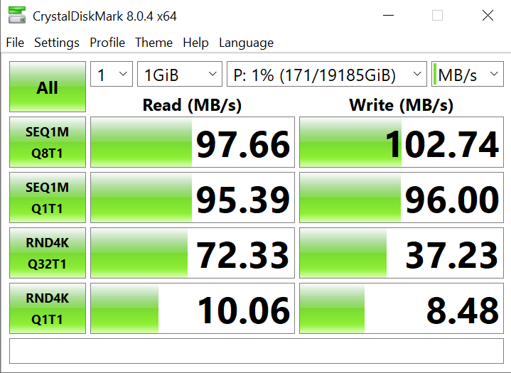 | Read MB/s | Write MB/s | Read MB/s | ||