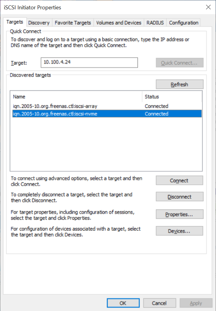 The first step in order to test iScsi performance, was to configure a few zvols, and a few iscsi connections.