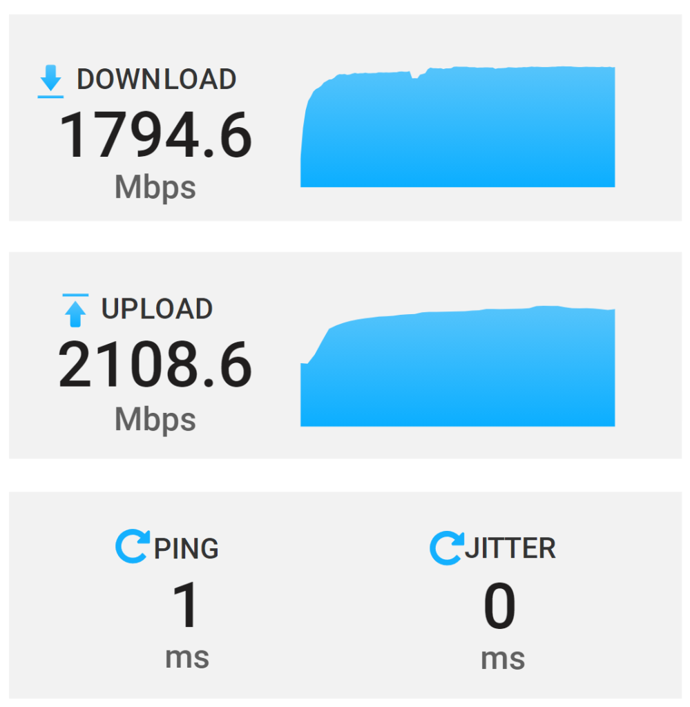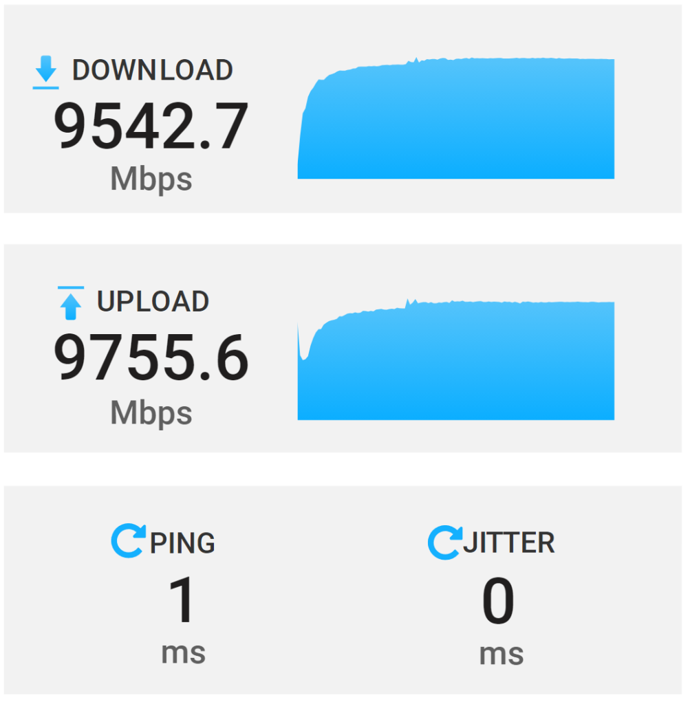 The first test- was to simply run my docker-speed test. Right off the bat, it did a solid 10Gbps, with a default network MTU of 1,500.