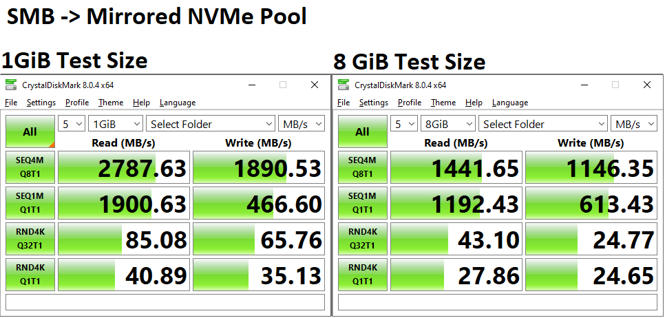 ISCSI -> Mirrored NVMe Pool: Result: Up to 3GB/s.¶