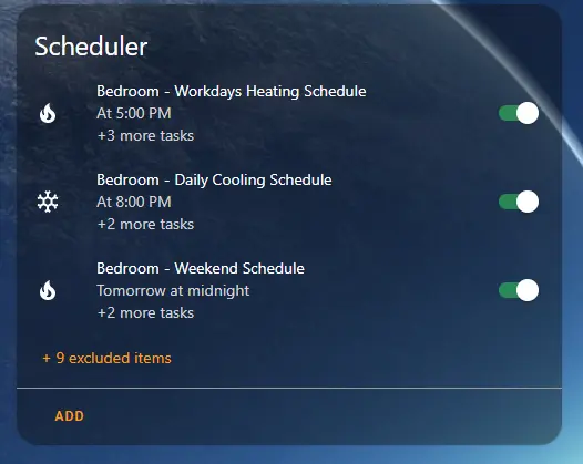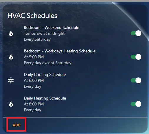 Lastly, For my “HVAC Schedules” dashboard, I use a tag named “HVAC” to filter. This hides the many other schedules I utilize.