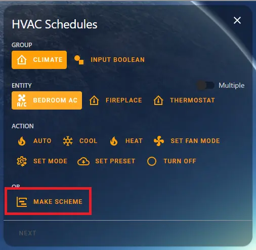 I found the scheduler-card has a “make-scheme” button, which is far more intuitive for creating schedules then what I put together in PART 1. In hindsight, this feature existed then as well…