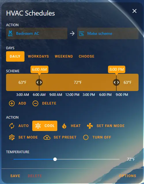 Since, I am creating a daily cooling schedule for my bedroom mini-split… here is what I want: