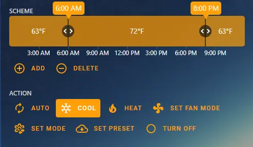 But, Ideally, I want to also be able to set a temp using “AUTO” mode too. Thankfully, the scheduler card has you covered, with minor configuration.