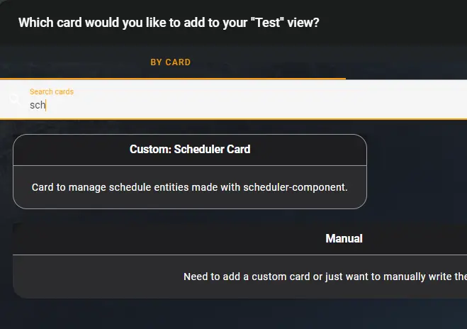 Next, add the “Custom: Scheduler Card” Card.