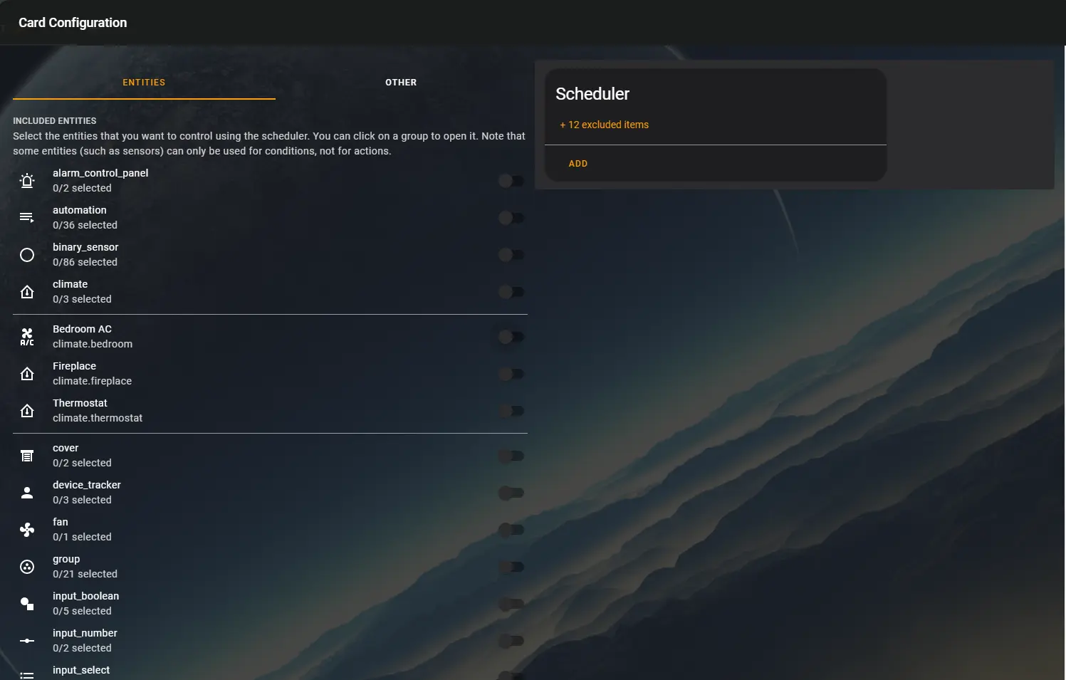 This allows the scheduler-card to consume the entire screen, which is ideal for me, because this is the only card on the display. For the purpose of writing this post, I have this disabled though….. It’s a tad hard for people to read massive 4k screenshots.