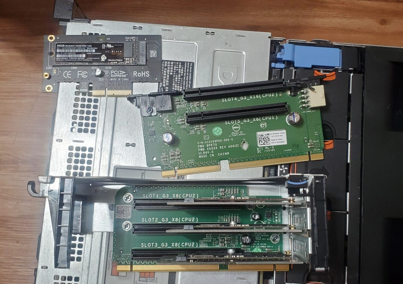 Next- I started removing the NVMe adaptors from the risers.