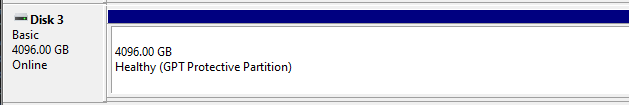 After getting everything configured, windows showed the status of, “Healthy (GPT Protective partition)”
