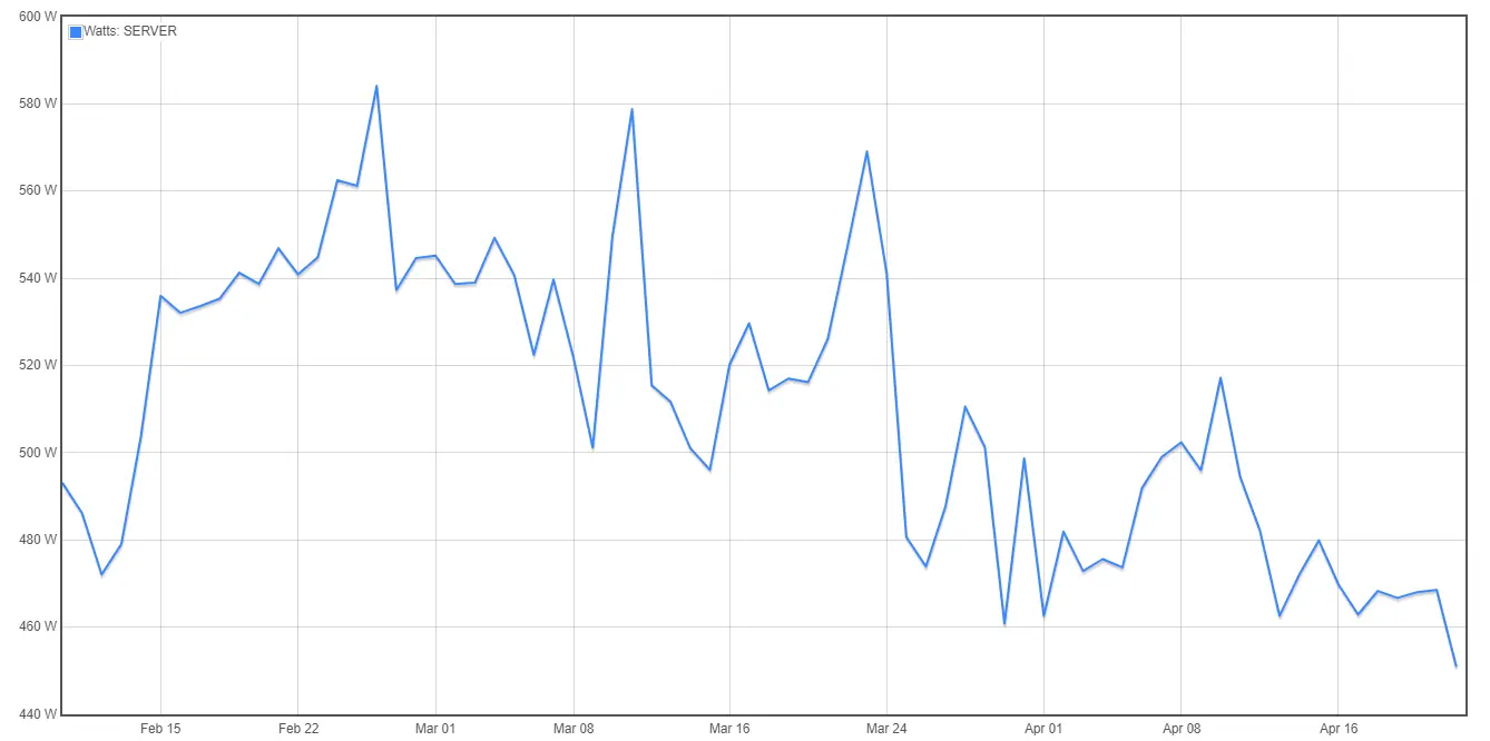 - 14 watts saved - Removed two HDDs from server, which were not in a pool.