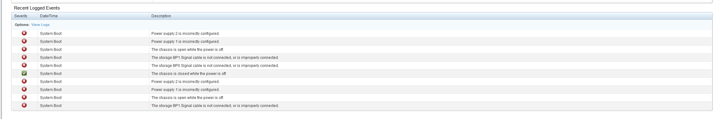 iDrac presented a few errors for "Power Supply Misconfiguration"