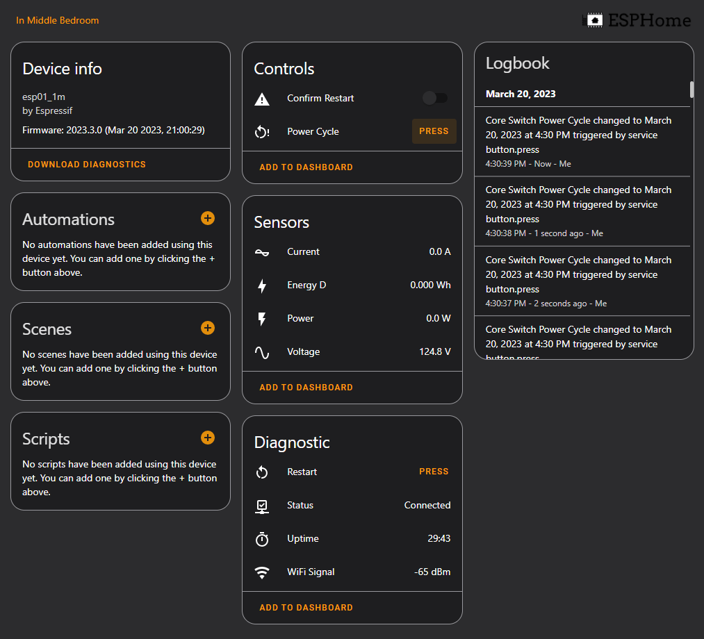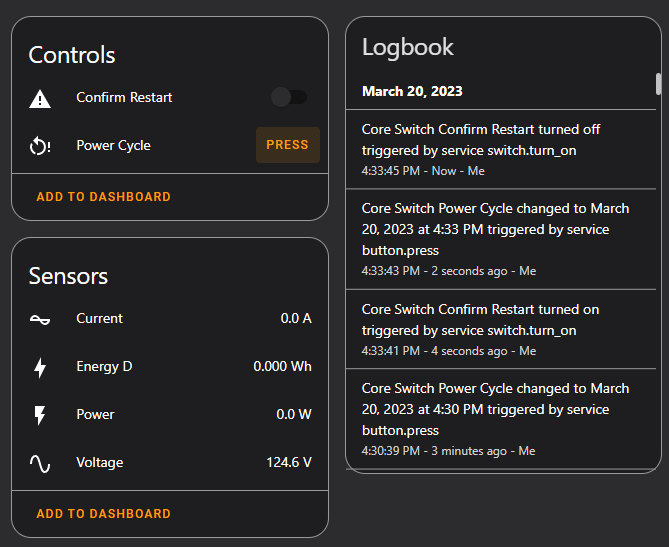 Now that we have a switch which we can toggle on and off from within home assistant, we need to connect this to the restart button.