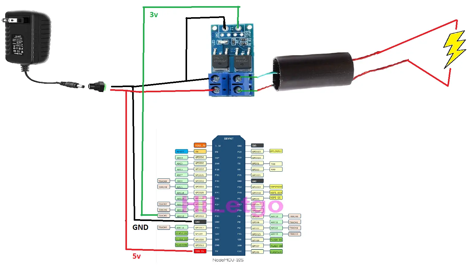 - VIN plug of your selected ESP device. (NOT the 3.3v link!!)