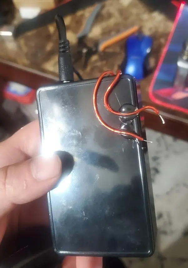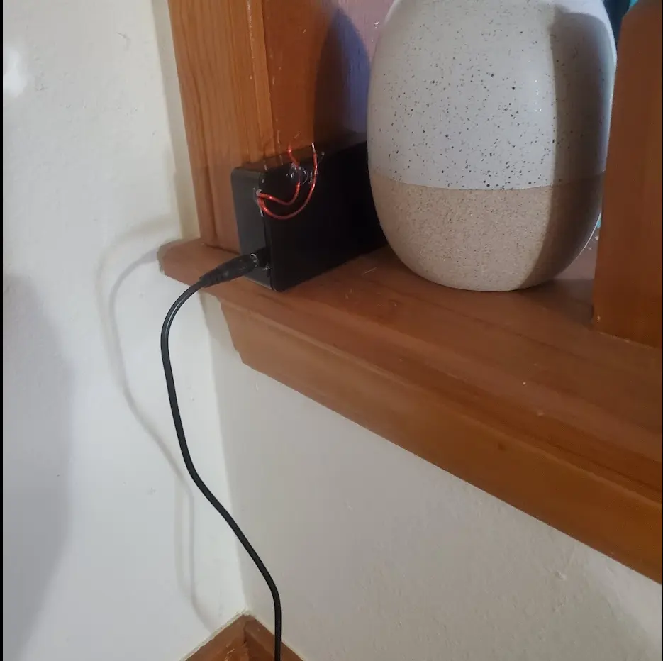 Next, I drilled a hole for the DC 5v PIN, and then used hot glue to hold the plug into place.