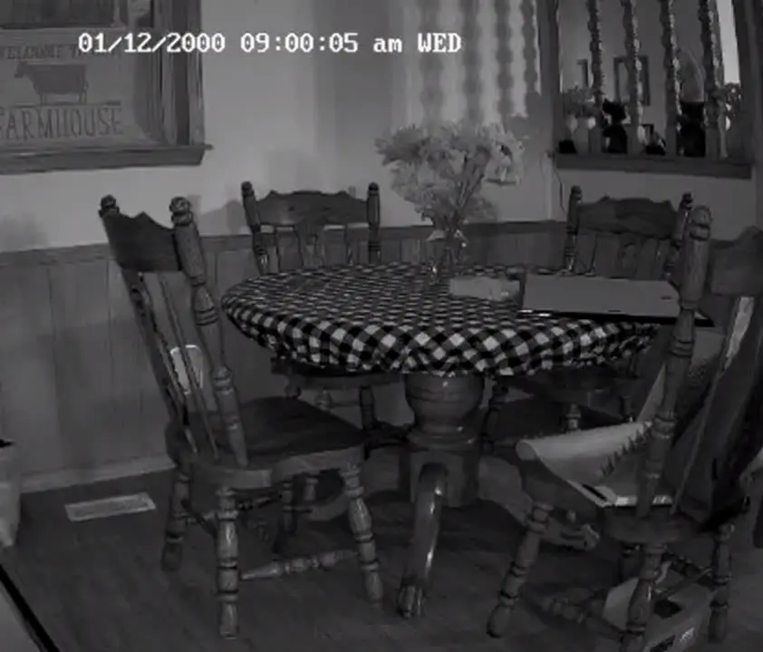 Do note, this is a color camera. However, since the room is currently uninhabited and dark- it is in "night vision" mode, which is black and white only.