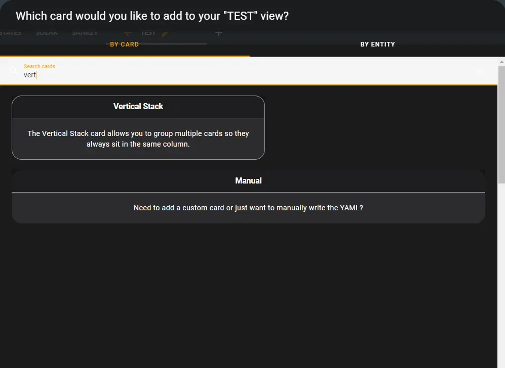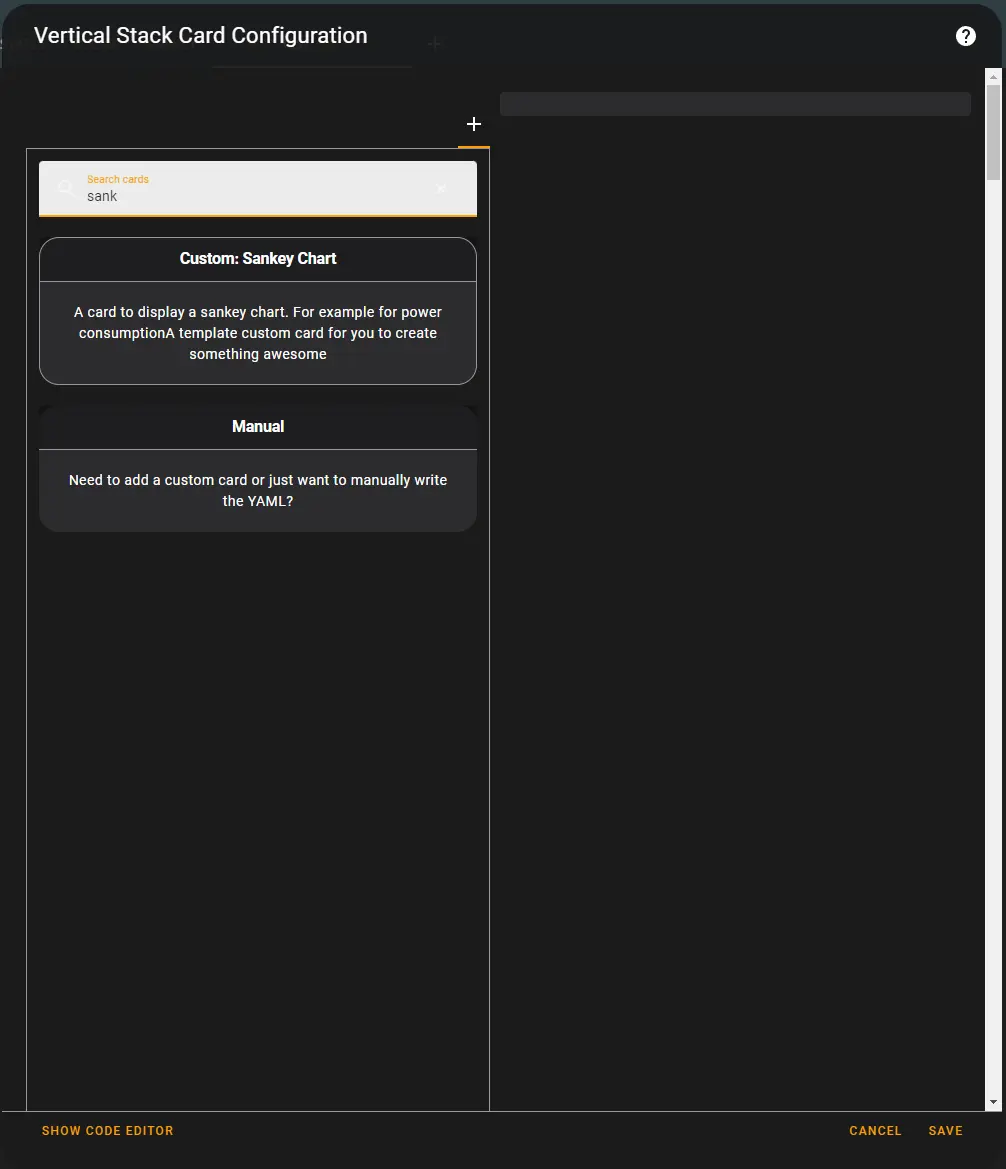 Once you have added the vertical stack card, add the Custom: Sankey Chart