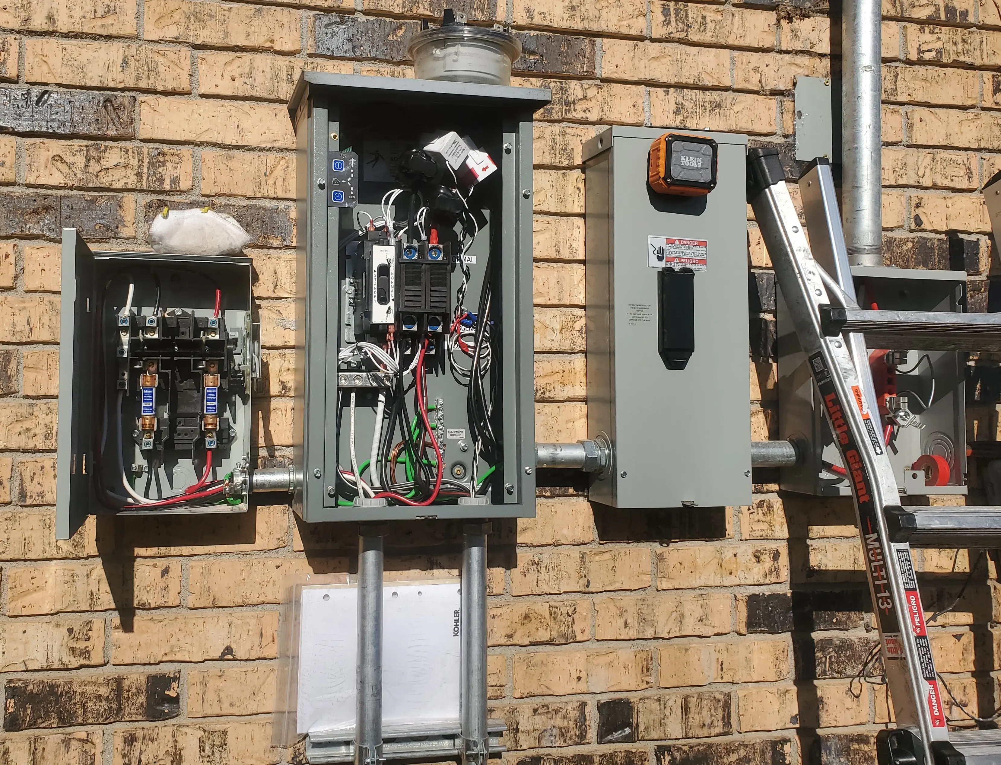Here is a mid-day shot of the work on the exterior, on day 2. Note, the new mast was already installed, the old meter removed. The visible CT clamps are directly connected to the inverter.