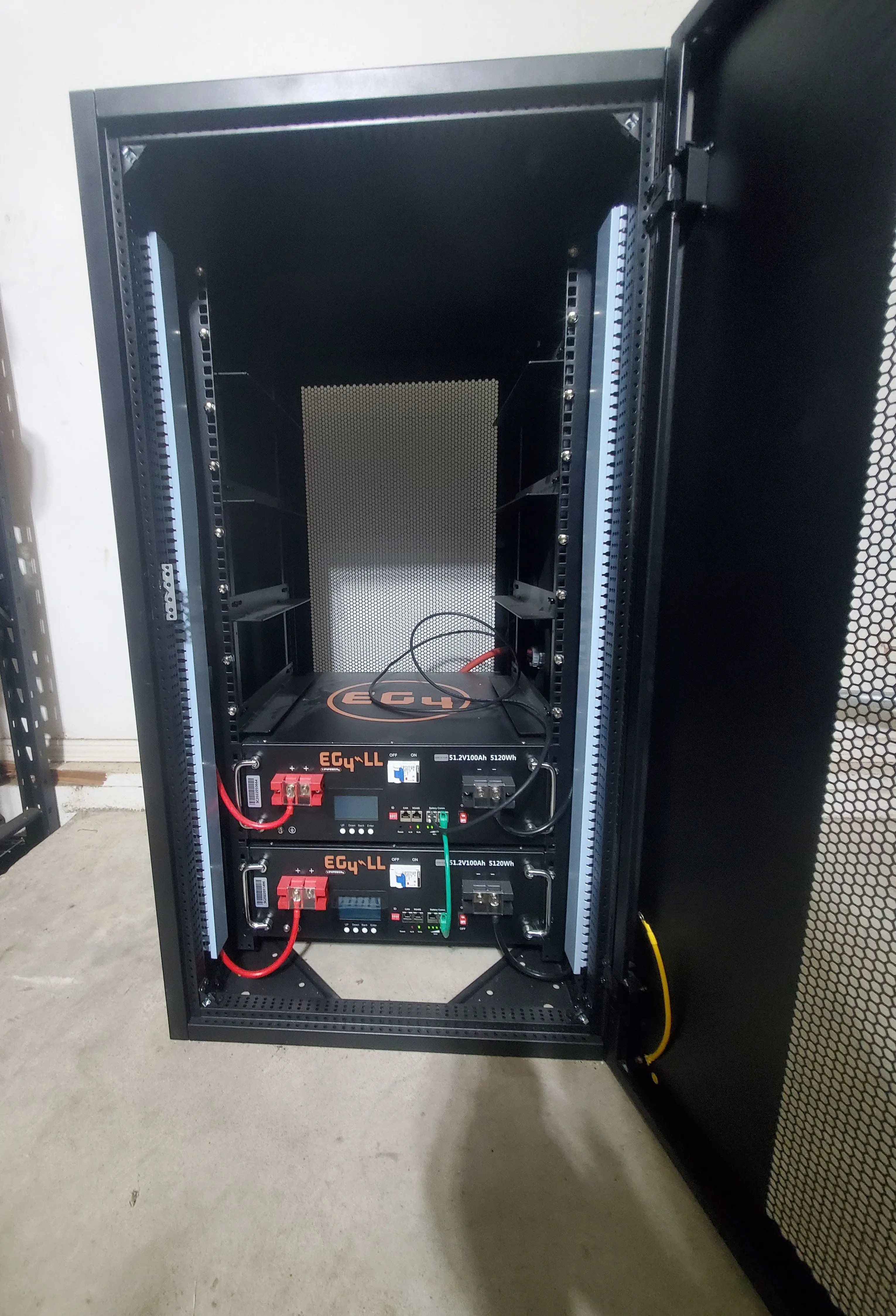 The black box on the left, is my EG4 Battery Rack. At this time, it contains a pair of 5,120wh 48v EG4-LL batteries for a total of ~10kwh of storage.