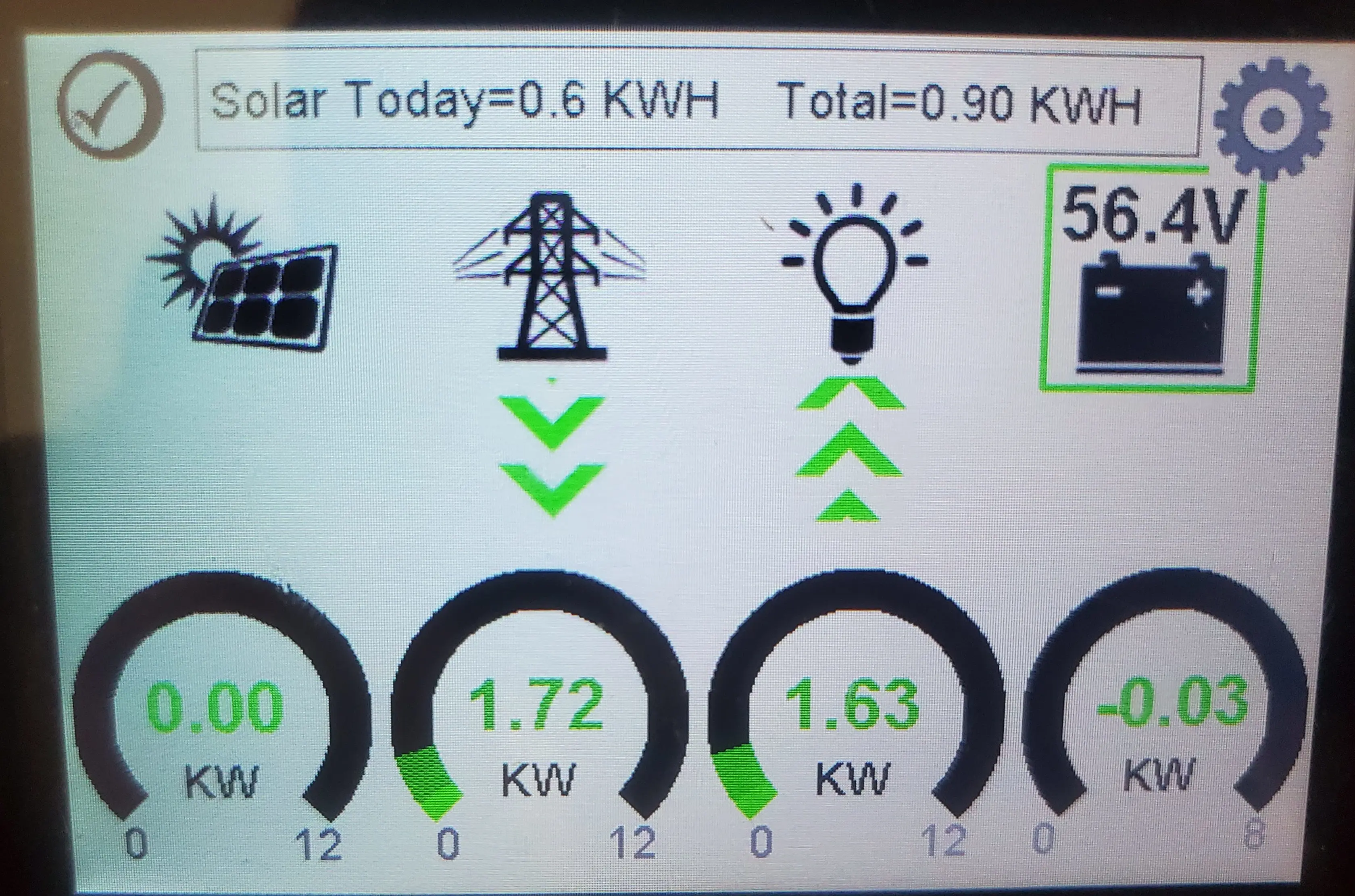 The inverter does offer a nice display, which will show all of the critical details at a glance. You can also drill into battery status, panel status, etc.