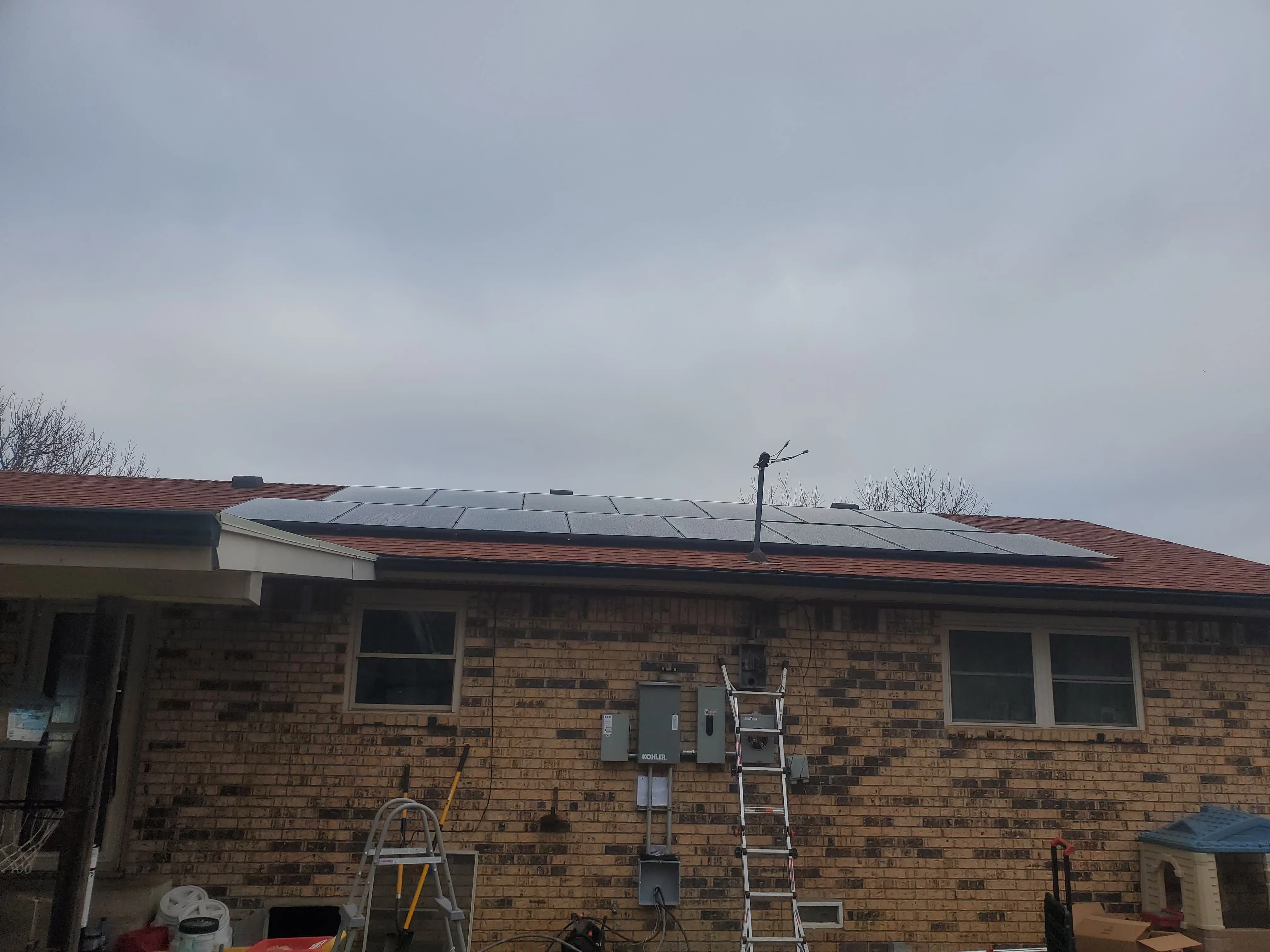 For the exterior of the house, most of the wiring here was completed on day 2. A mast/weatherhead was also installed after the old meter box was removed.