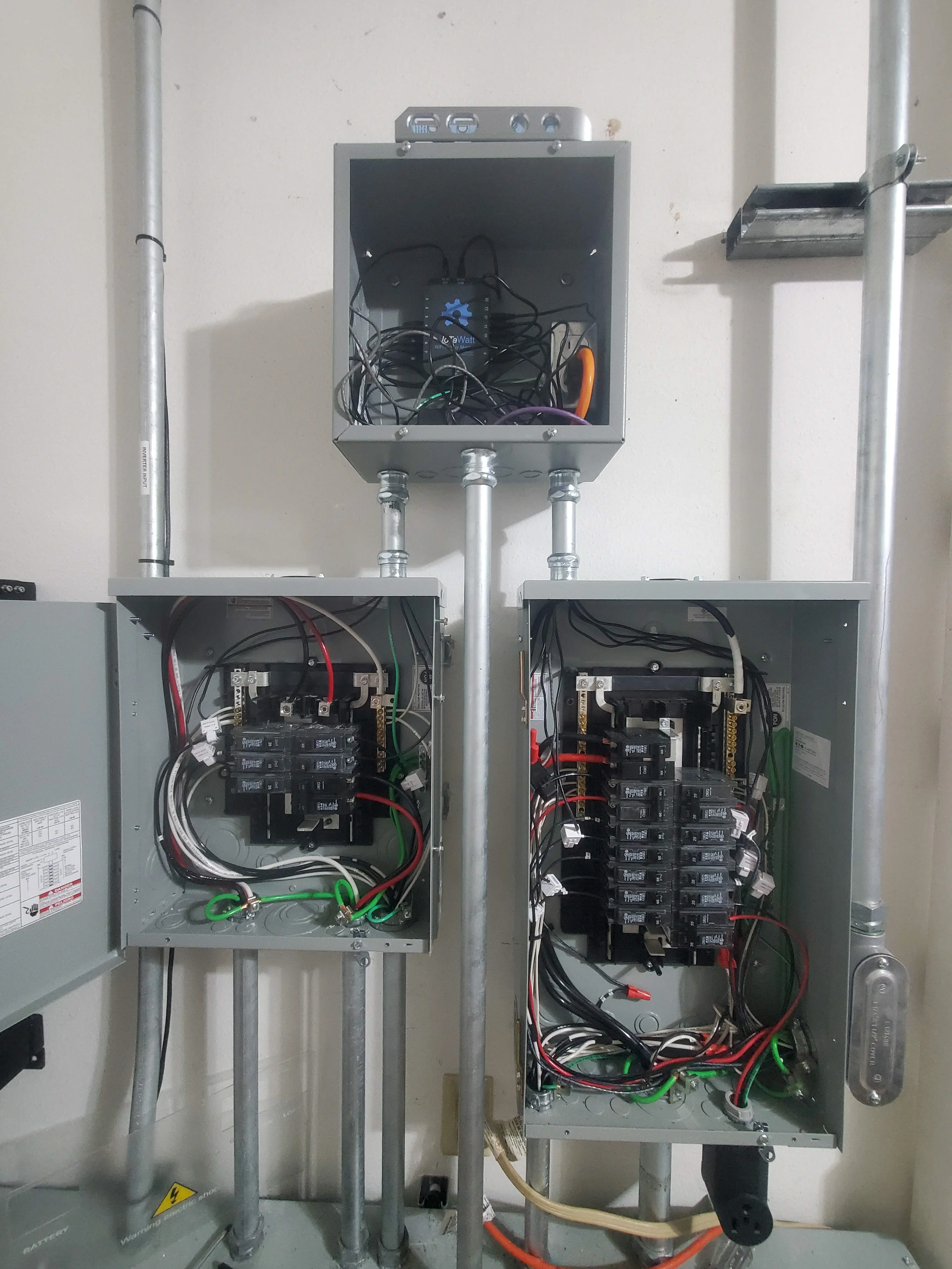 I installed a single outlet into the add-on box to provide power for the hardware used for data collection. It was wired into a dedicated breaker on the critical-loads panel, which is on battery-backup. Since we are using a metal box, make sure to tie the ground into the metal box.