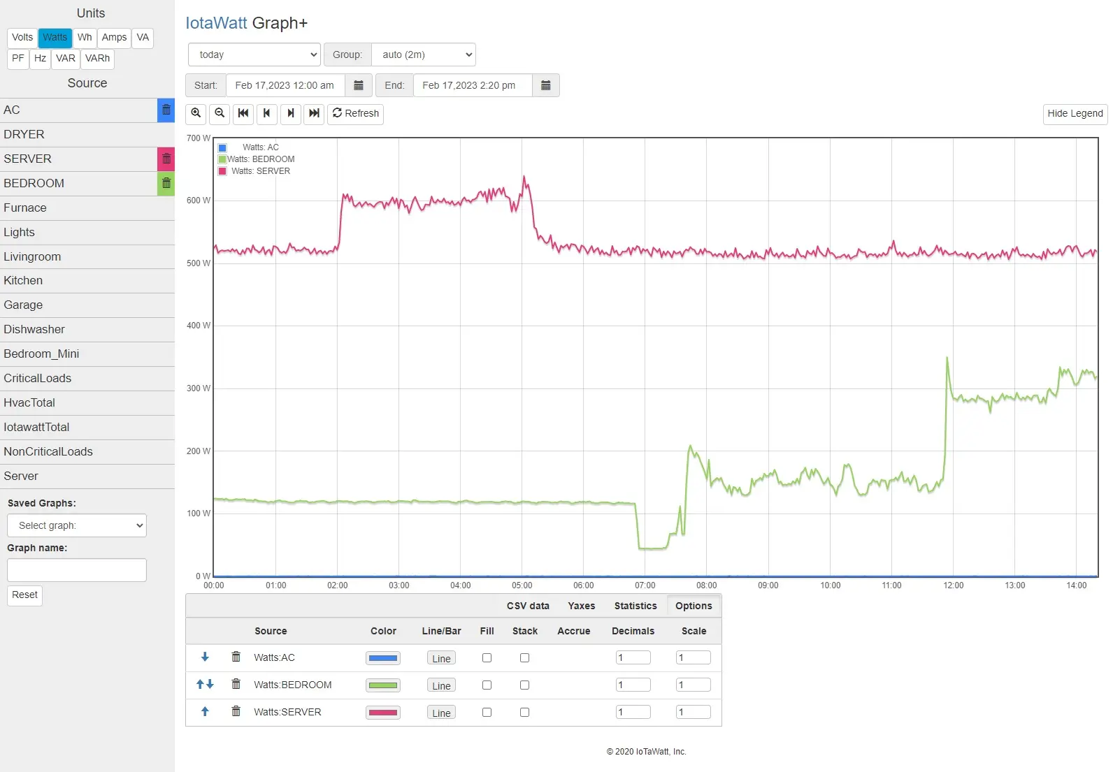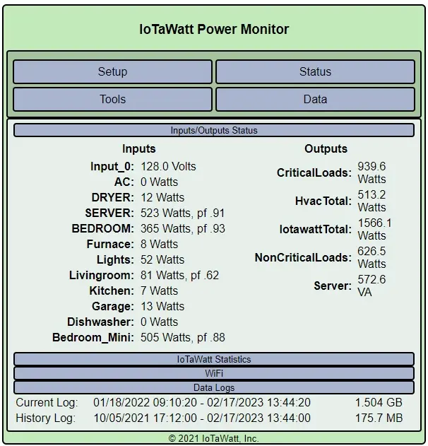 After I was happy with the routing, I checked the Iotawatt website to verify all of the clamps were reporting correctly. Do note, the direction of clamps DOES matter.
