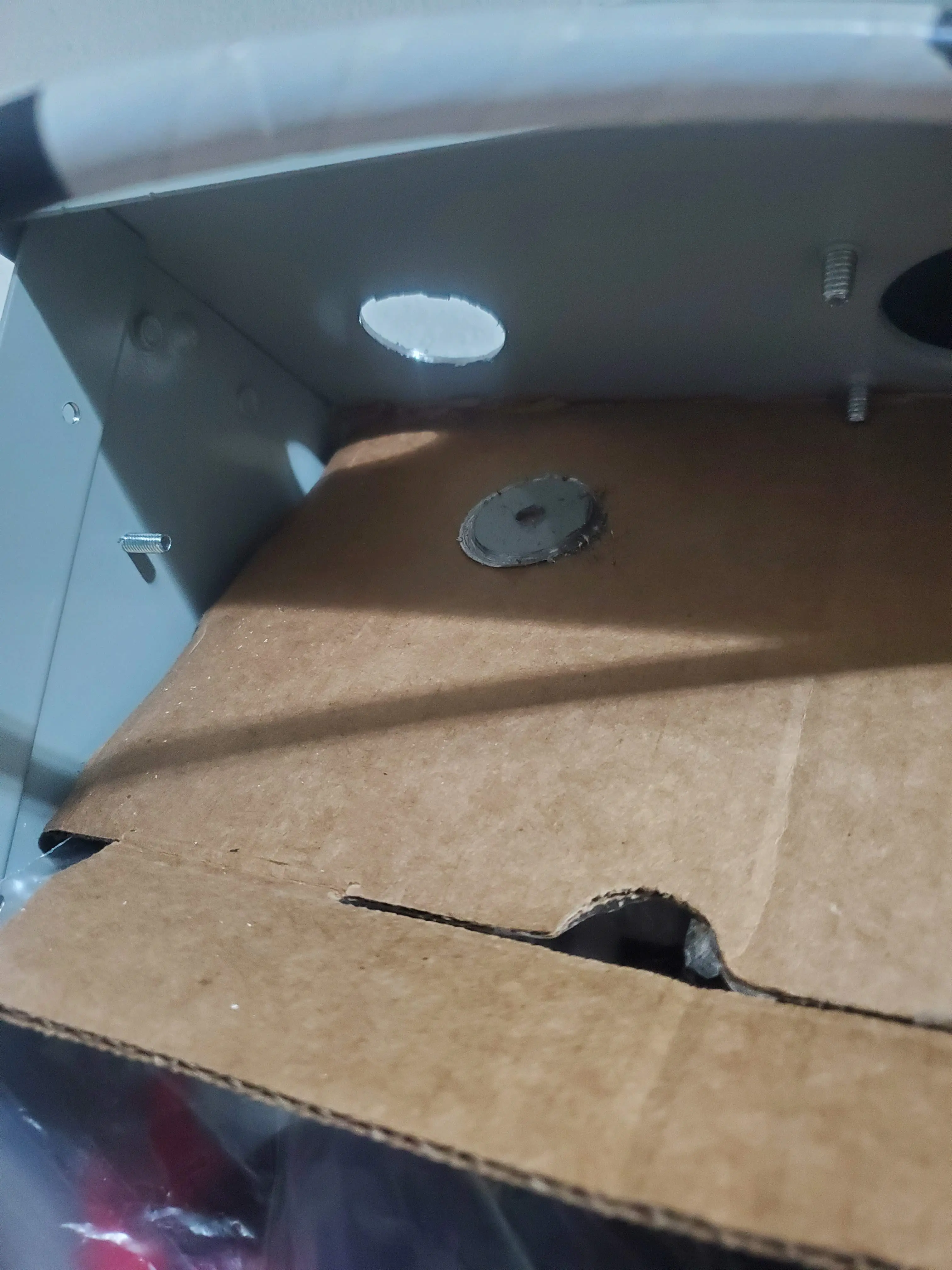 Since, metal filing and live electricity has a large potential of causing issues, I used a piece of cardboard with a magnet taped on the back to catch and/or deflect metal shavings from the interior of the panel.