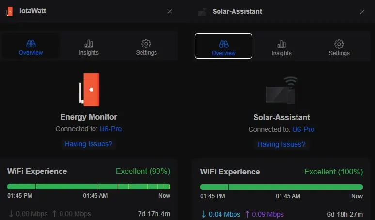 For connectivity, I am using wifi for both the solar-assistant, as well as Iotawatt.