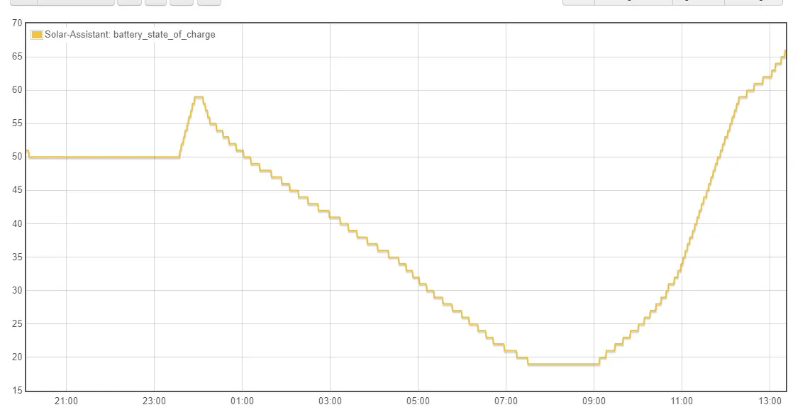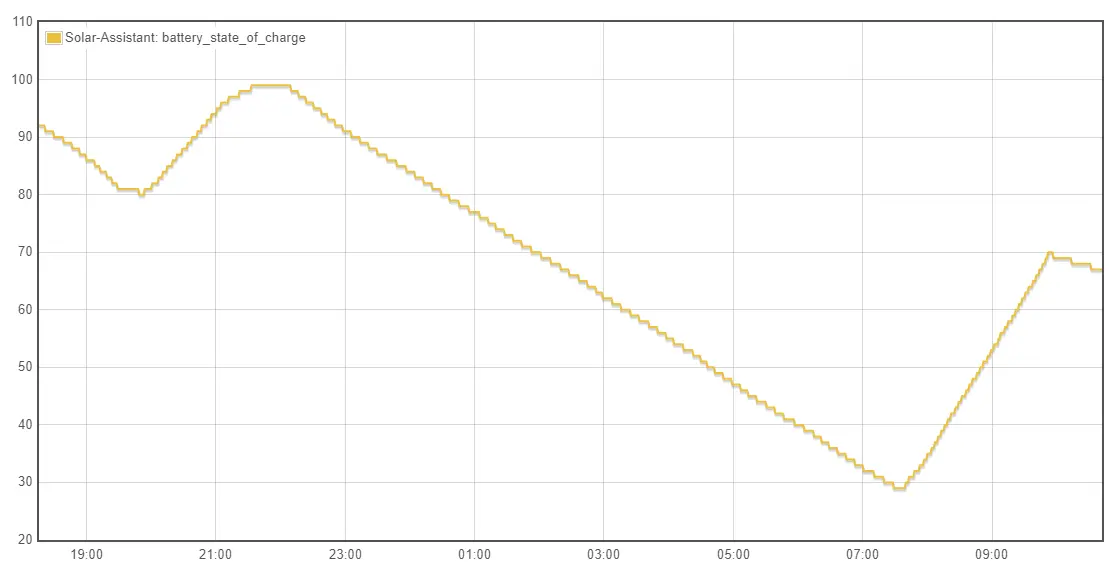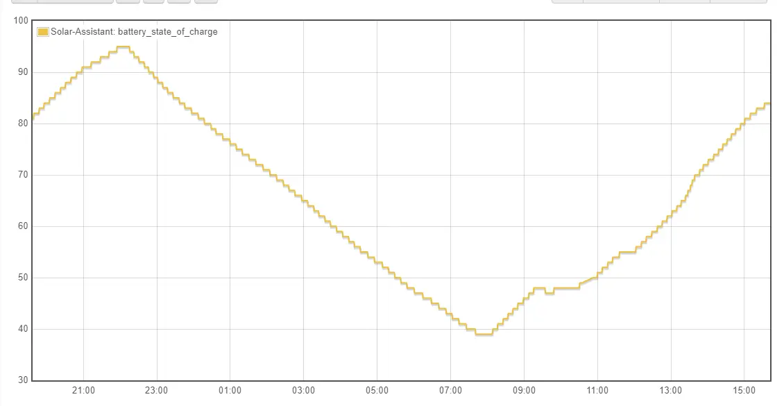 Recognizing the impending storm's severity, I proactively initiated the battery charging process about an hour before it hit. Normally, the batteries would accumulate surplus solar energy during the day and discharge only to a minimum of 50% capacity.