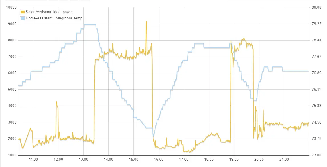 Fortunately, this level of production is sufficient to power a significant portion of my house. Essential operations like running servers, work computers, dishwashers, dryers, and washing machines can all function with this level of solar output. The main exception is the central HVAC unit, which requires more power than the available solar production can provide.
