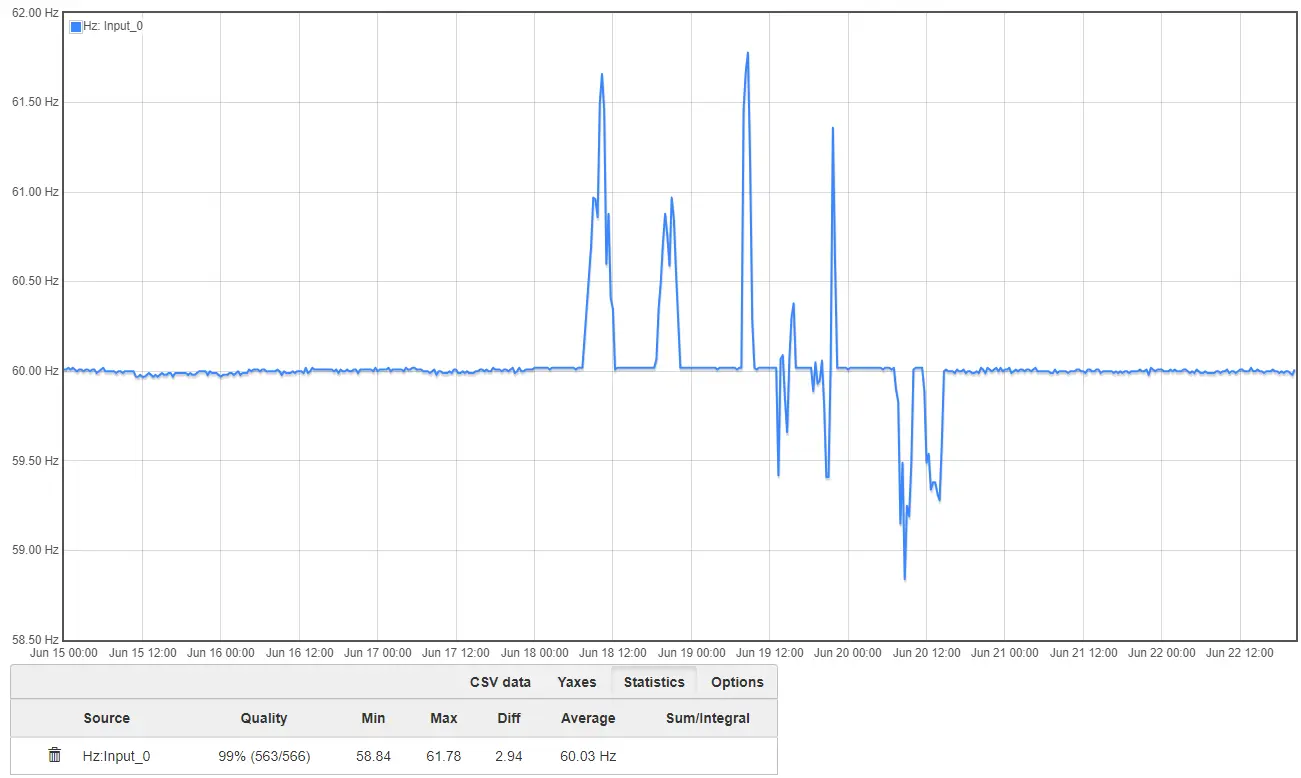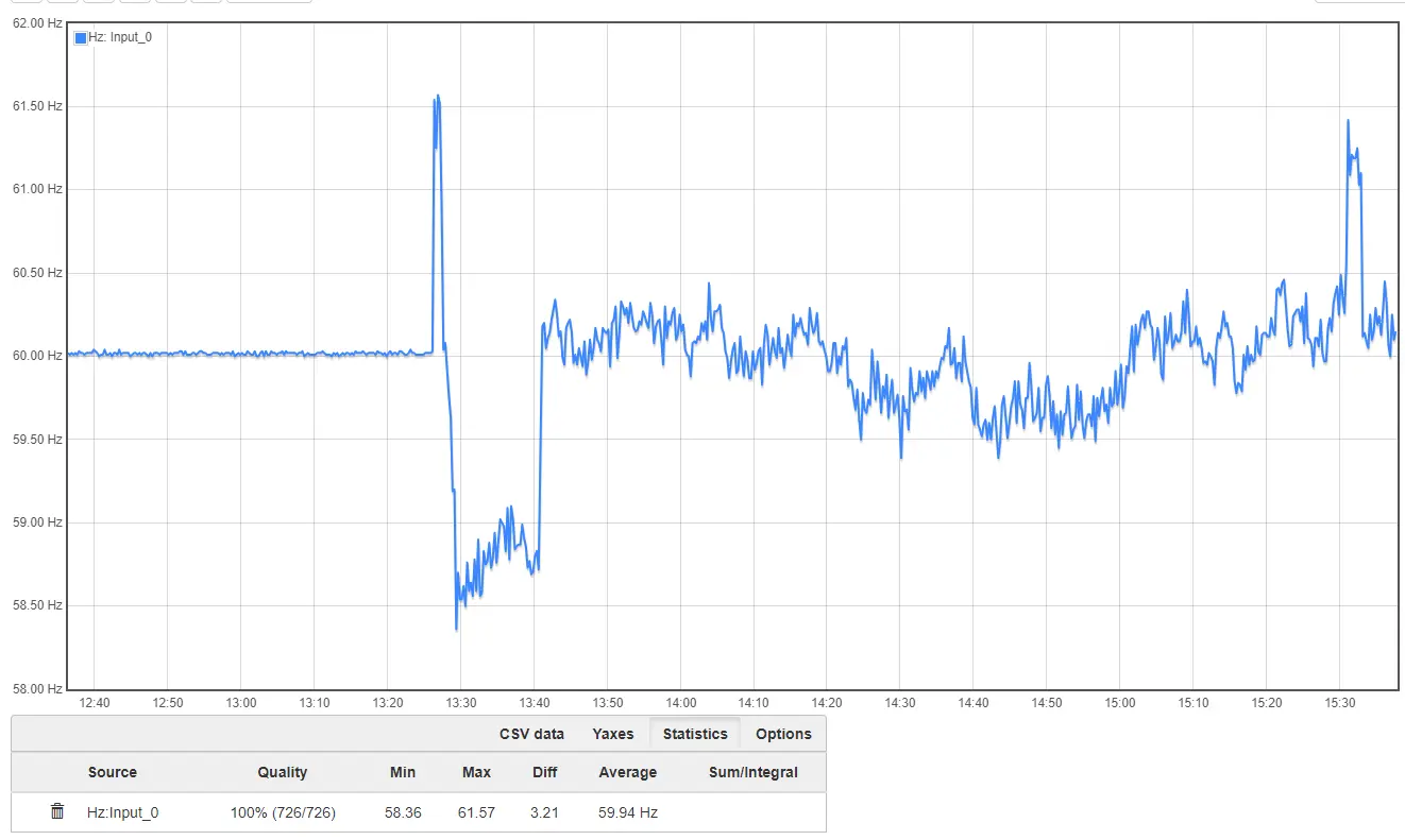 The MASSIVE spikes everywhere, is the frequency when operating under generator power.