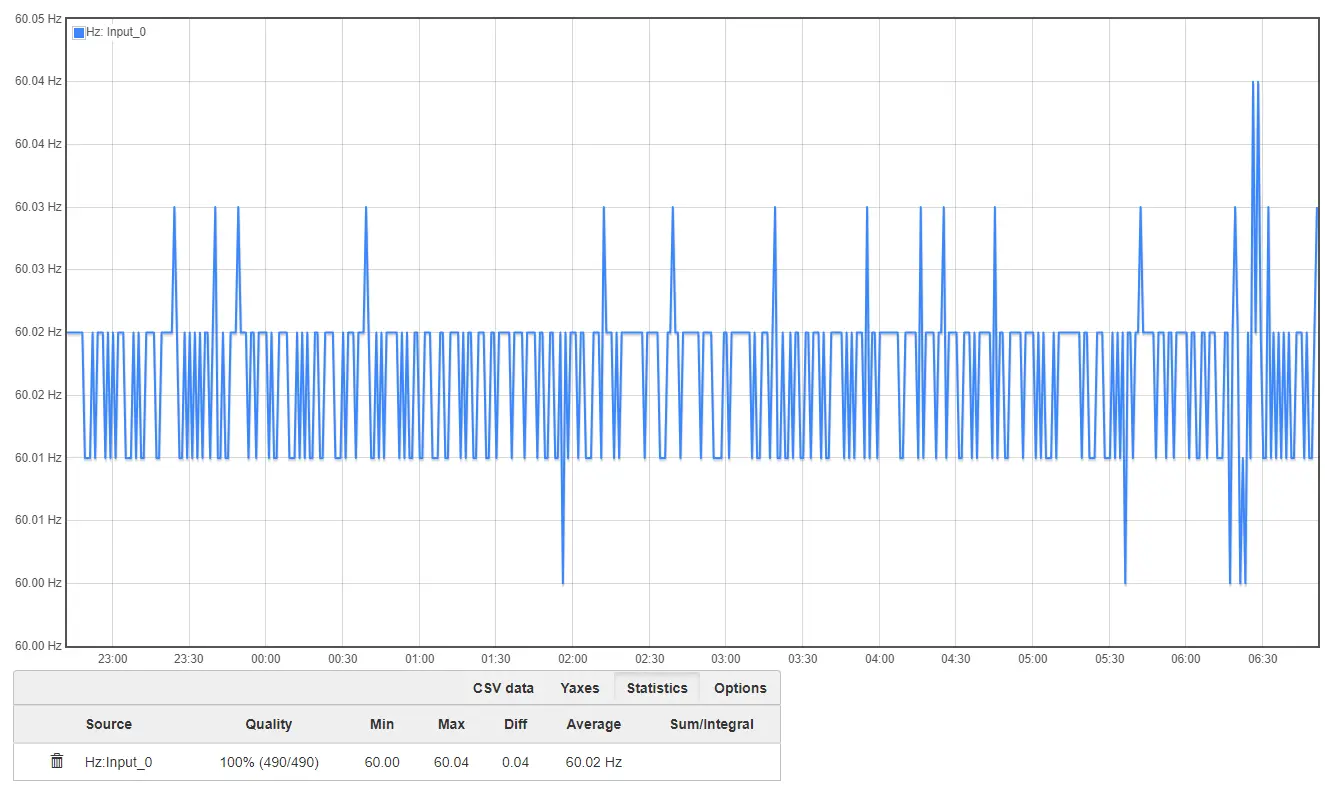 This- is a full day worth of grid power. Notice, the maximum deviation, is only 0.10hz.