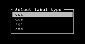 For label type, choose GPT.