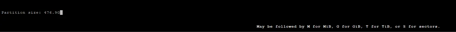 After you press enter, you will notice a prompt at the bottom. It should automatically fill with the usable size of the disk. Press enter again.