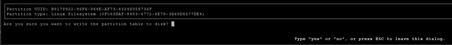 After you click write, you will to confirm your changes. Note- this will delete anything on the disk. Type yes followed by enter to confirm.