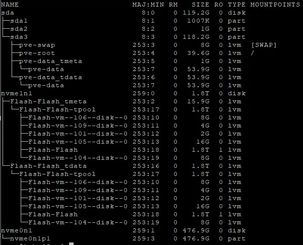 ACTIVE '/dev/Flash/vm-101-disk-0' [2.00 GiB] inherit