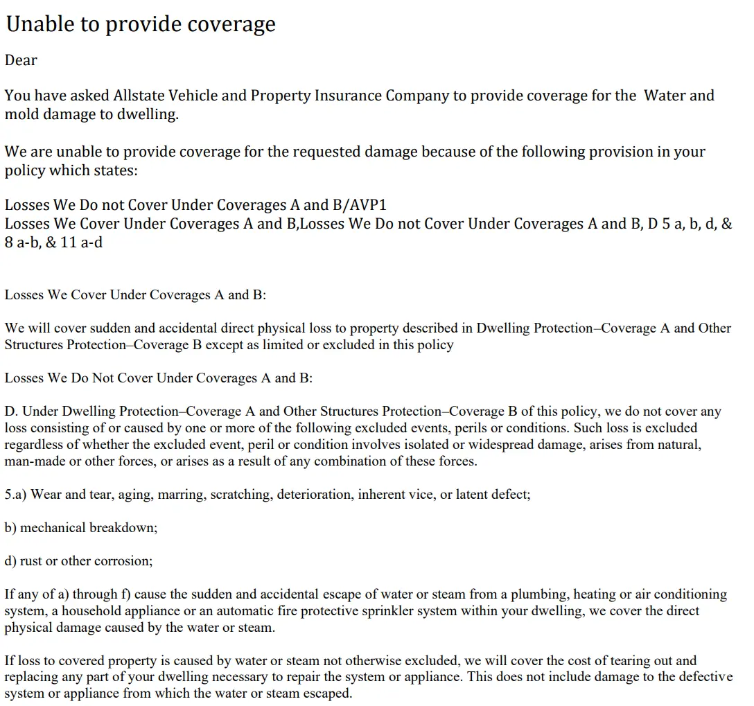 I will save you from needing to read the entire policy, and its numerous pages of "exclusions" to coverage- but, I will draw attention to AllState - Does homeowners insurance cover water damage