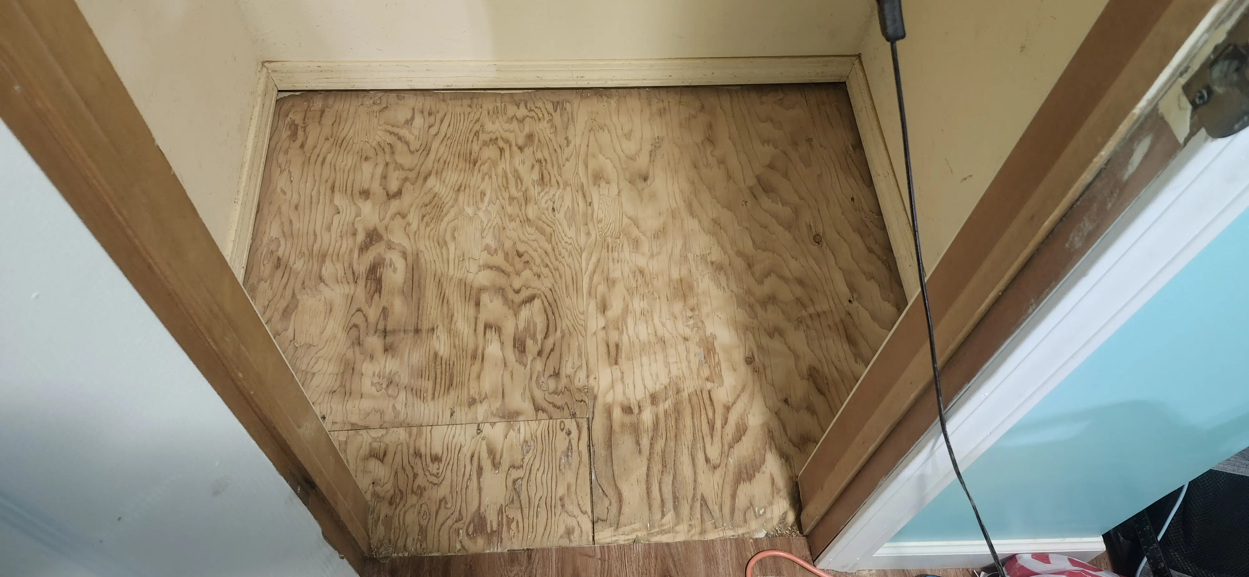 While someone was working on texturing the drywall, I did decide to go ahead and redo the floor in one of the closets.