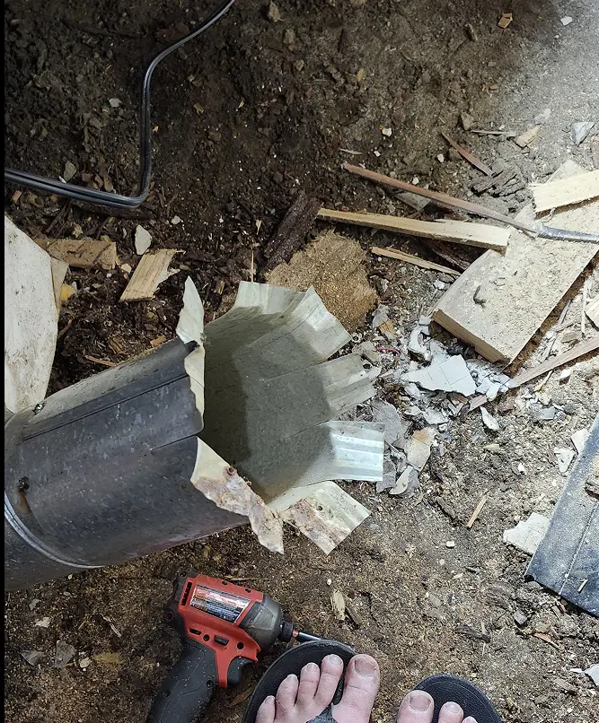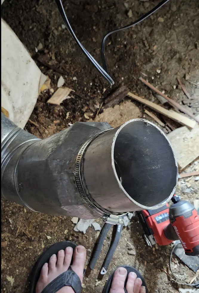 Due to the timing, most of the hardware stores was closed when this was done. Since, my new vent had a 4" inlet, I needed to adapt the existing 5" line.