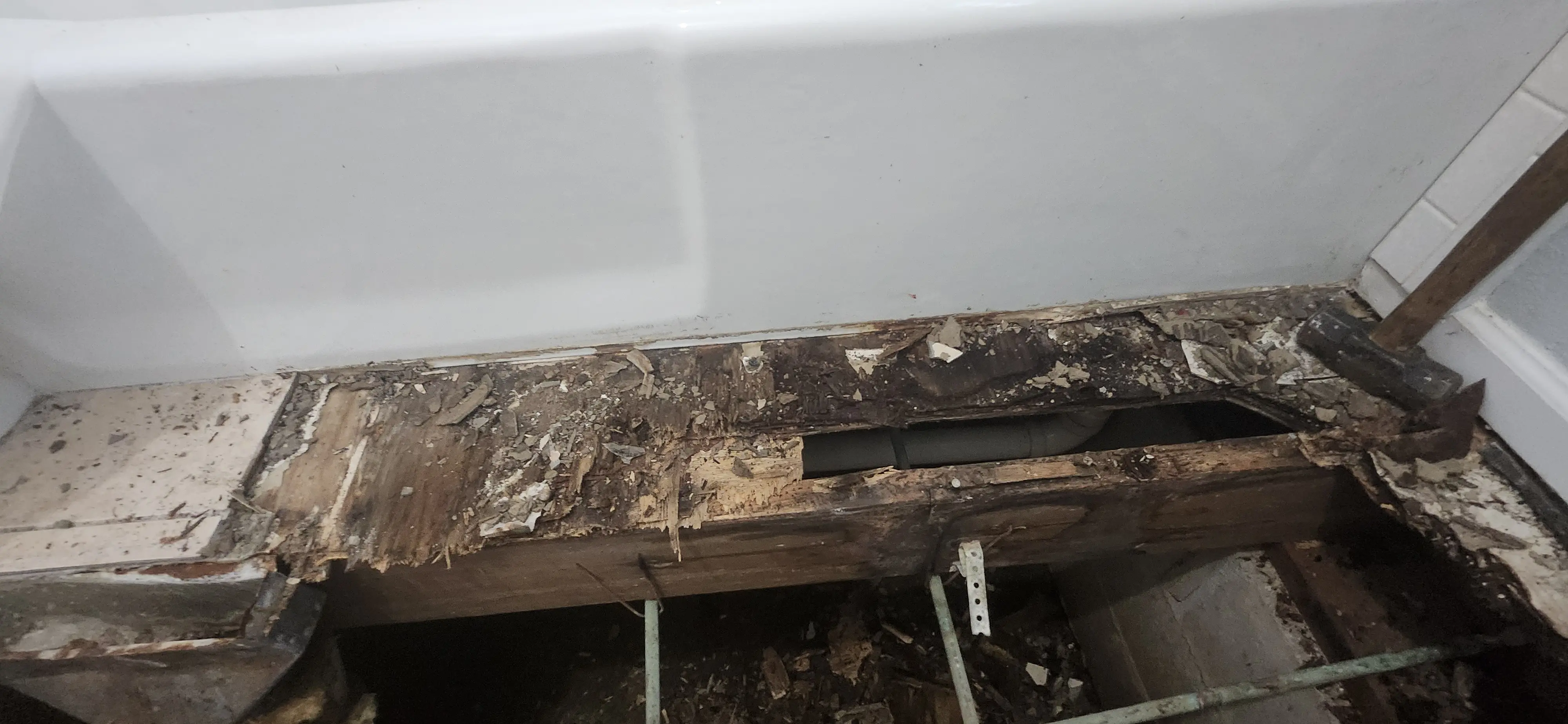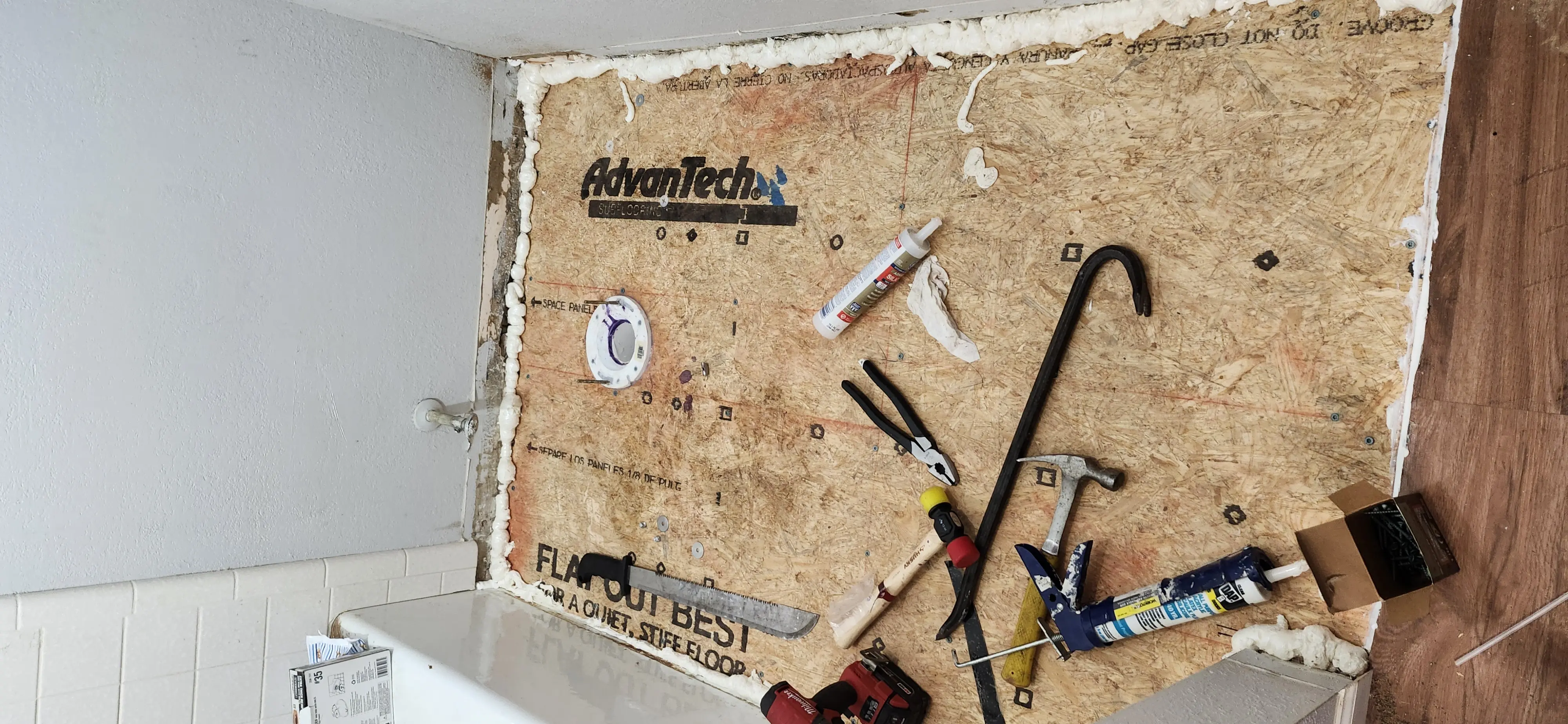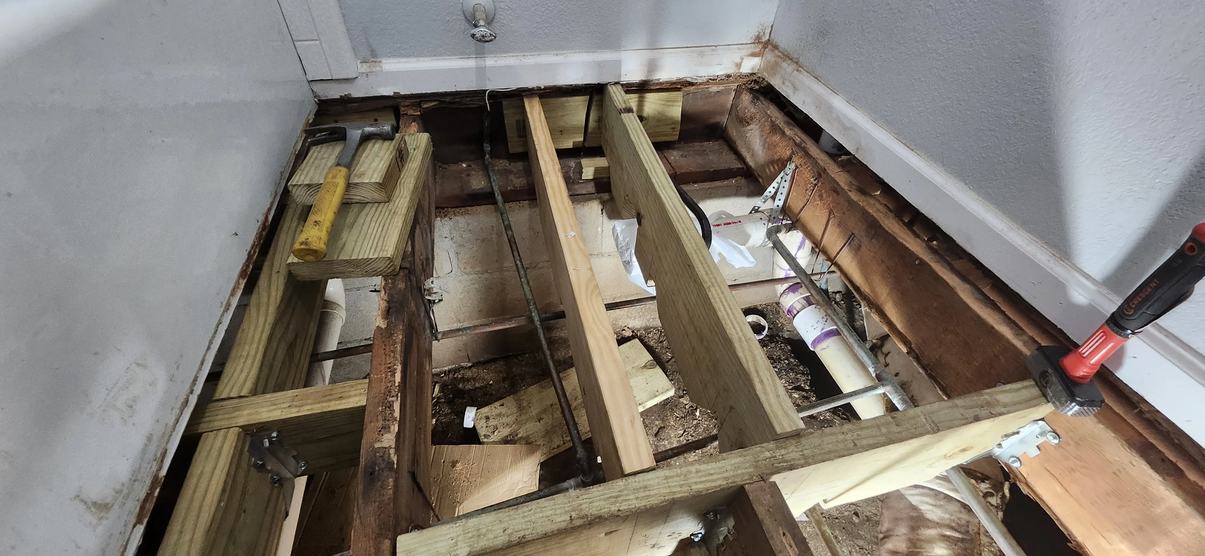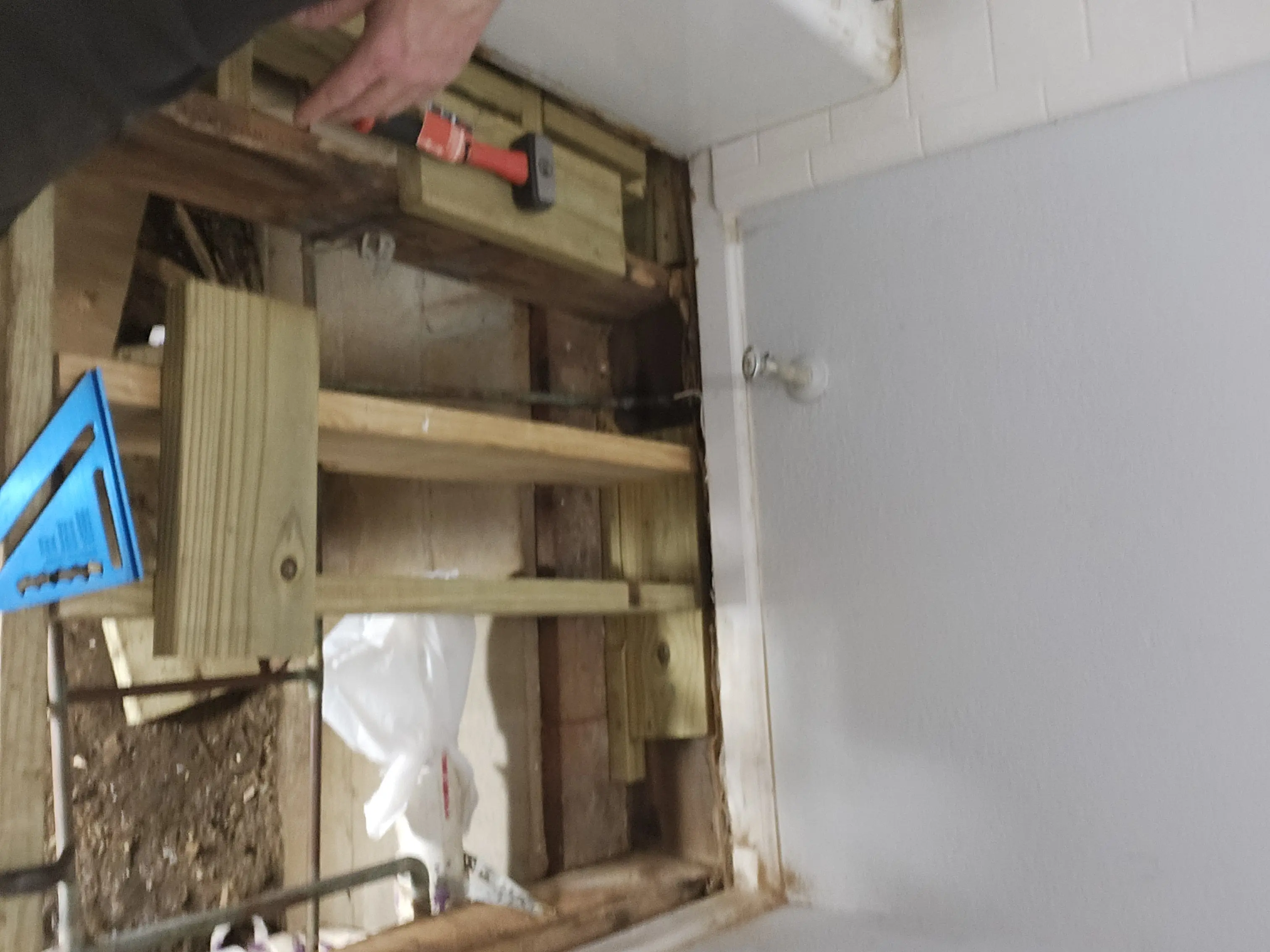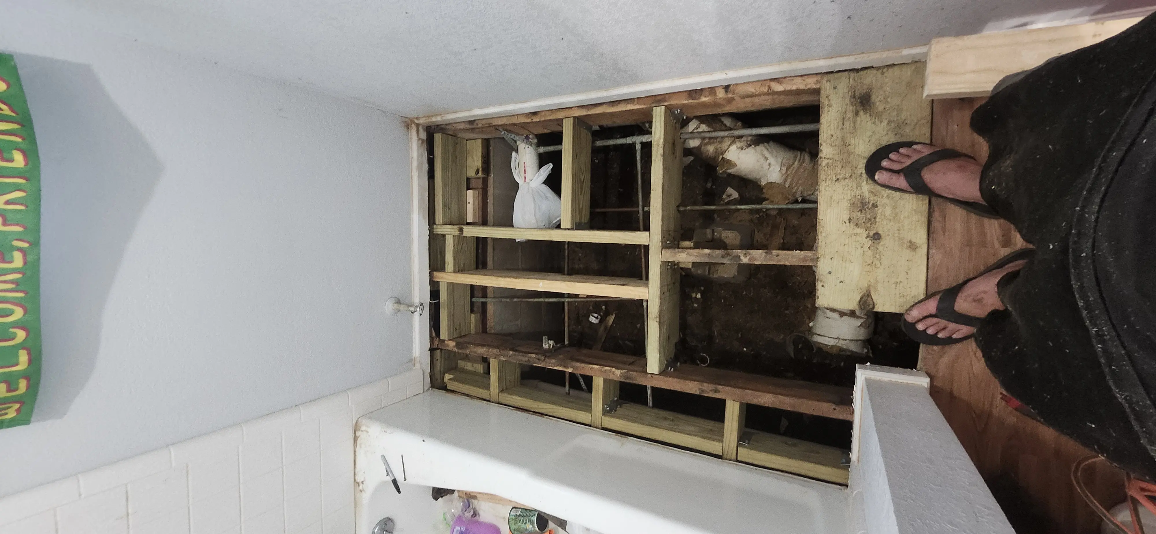 Do note- the new floor does not fit under the tub. Additional support was added under the tub as well, to ensure it is properly supported.