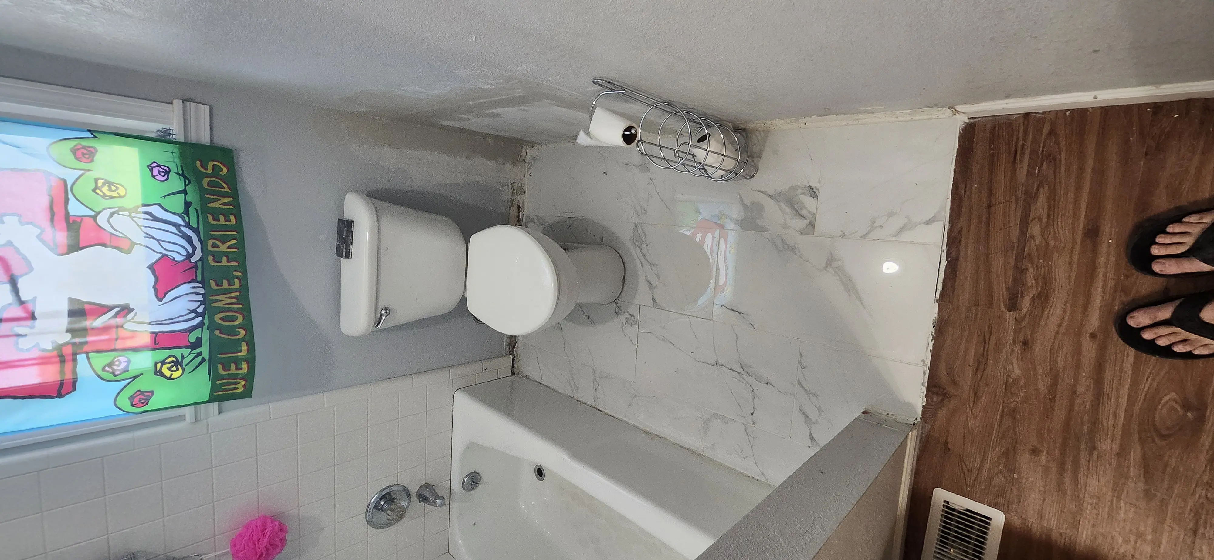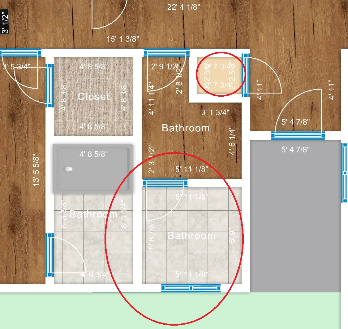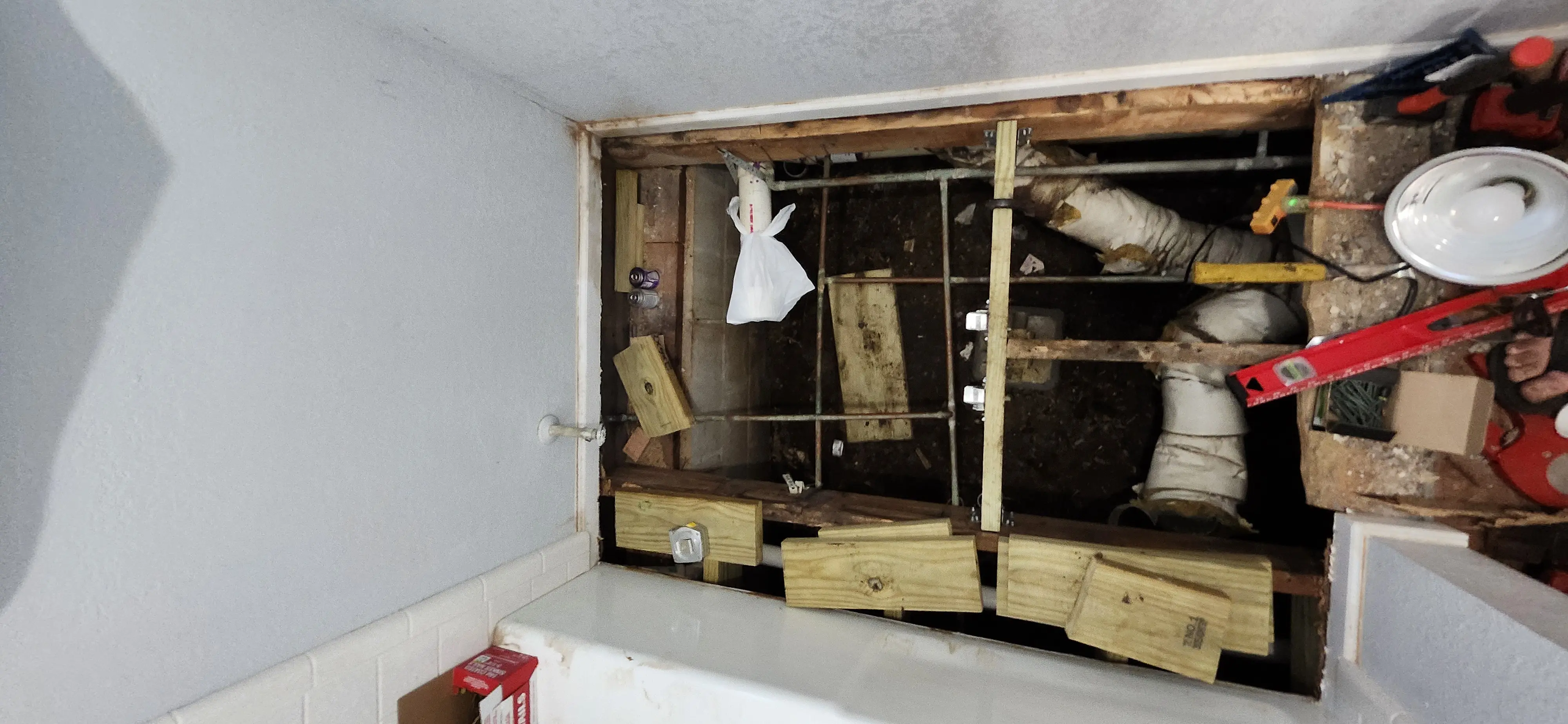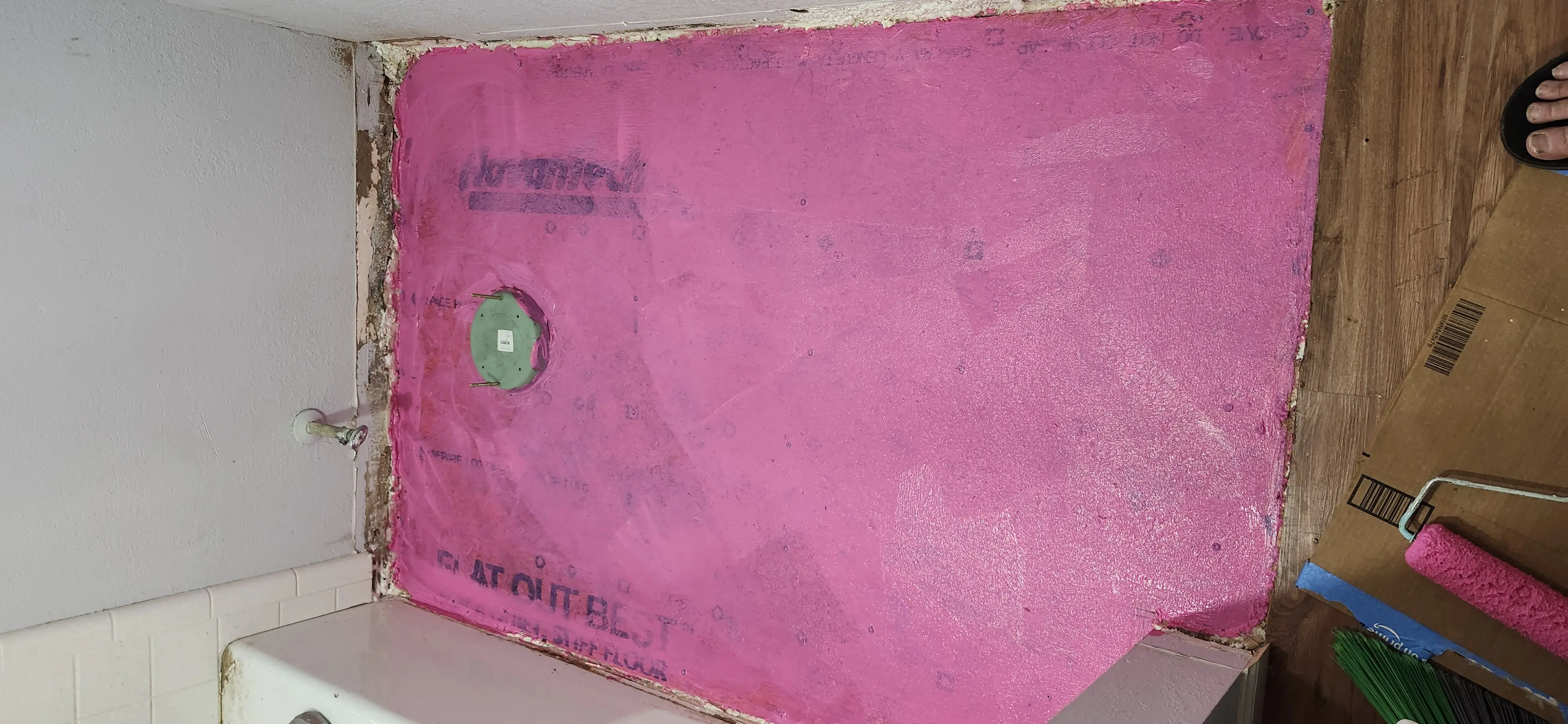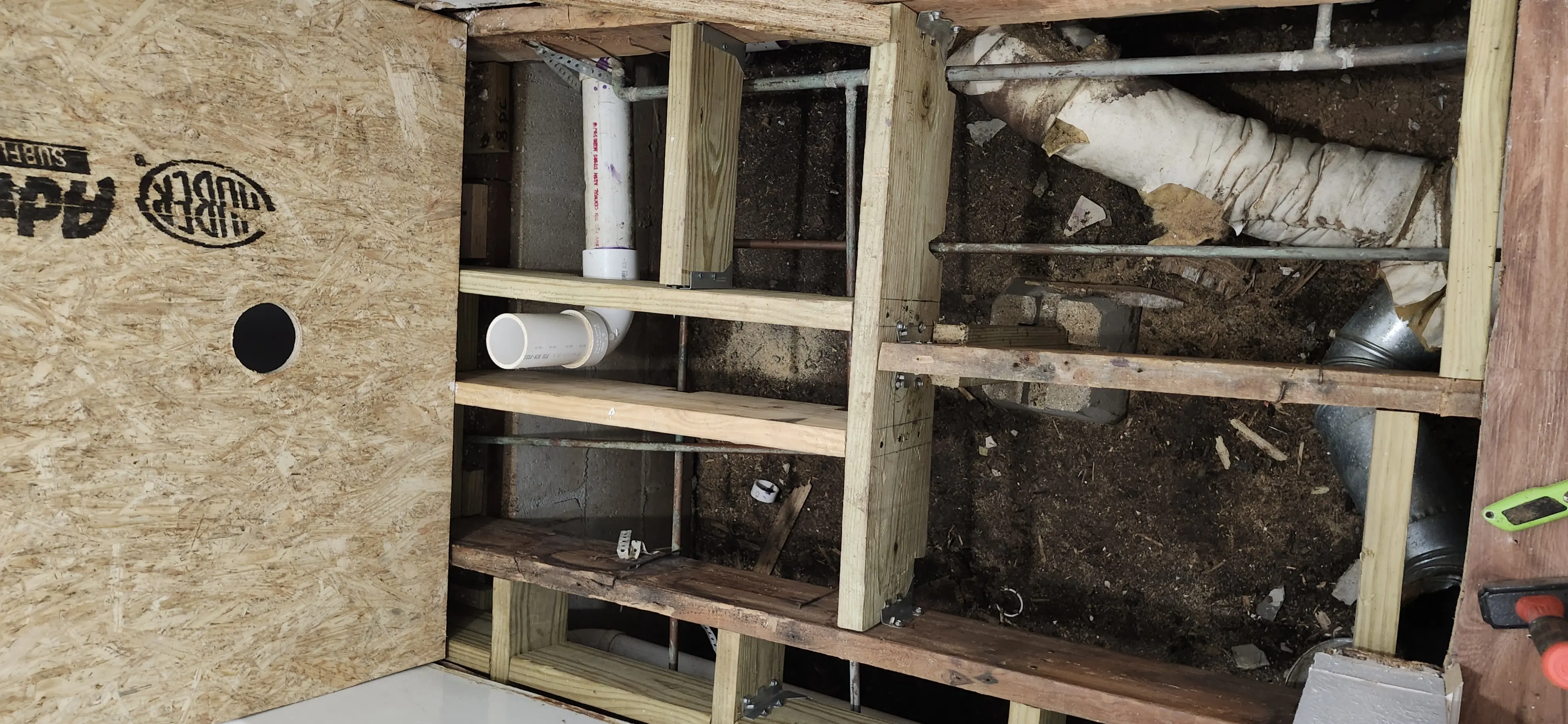 Do note- the new floor does not fit under the tub. Additional support was added under the tub as well, to ensure it is properly supported.