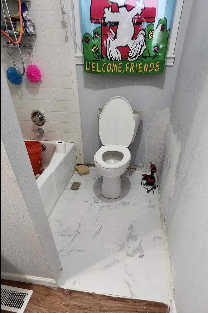 Recently, it came to my attention the floor in my middle bathroom had become a hazard, and was rotting out.