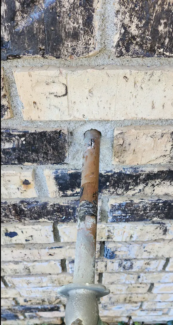 First- a picture of the cut pipe through the wall, after I cut it off, at the section which was nicked.