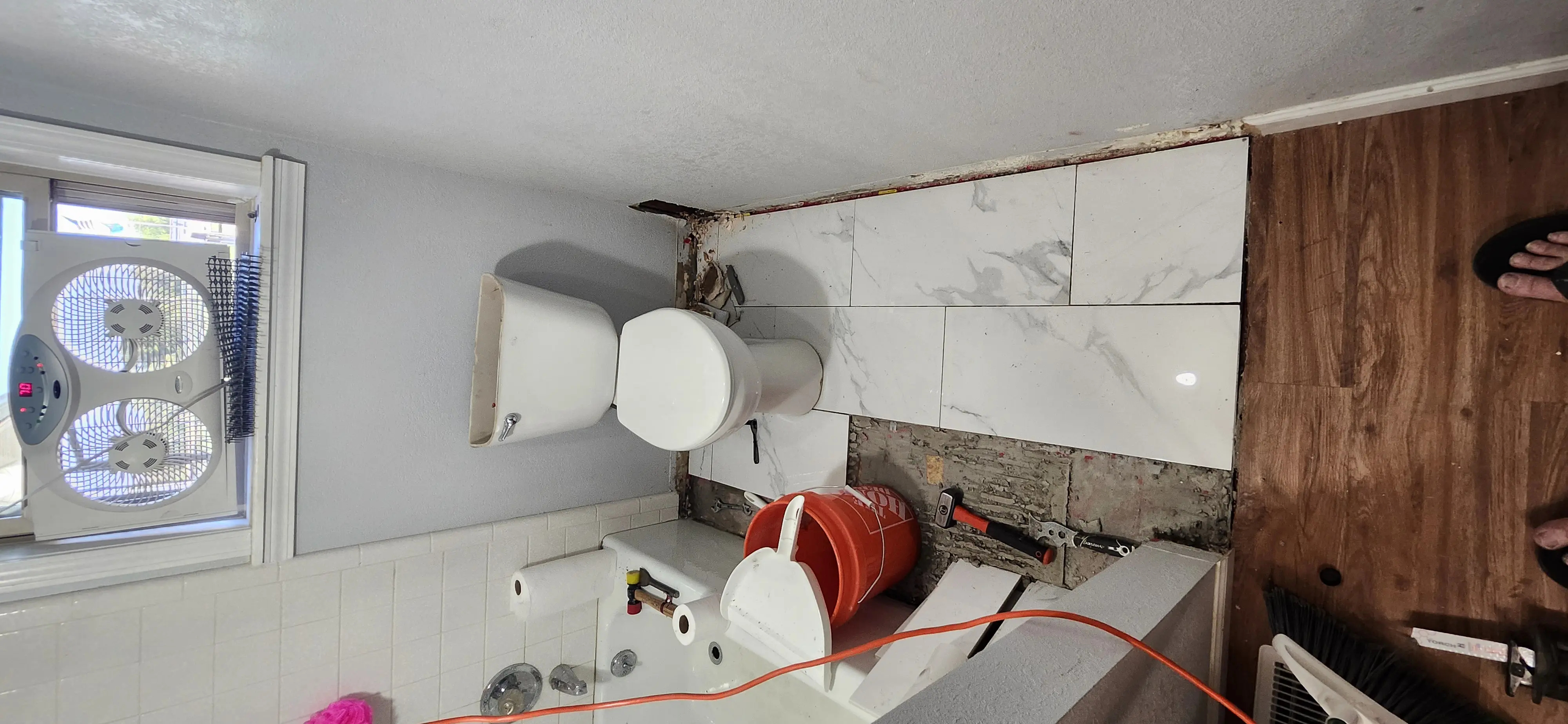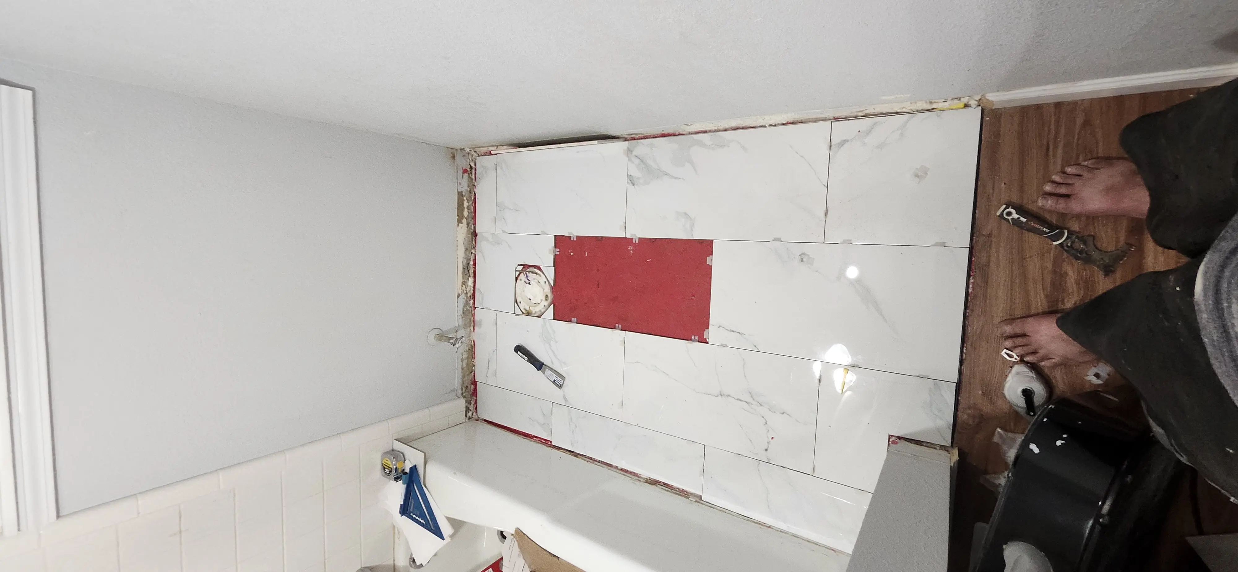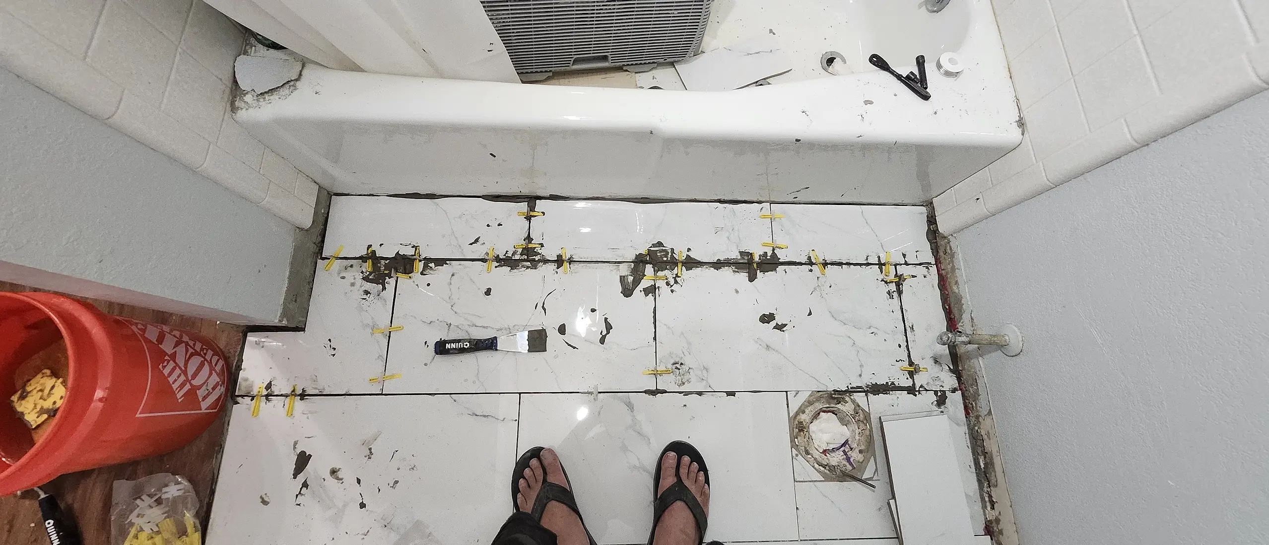 With, the plumbing issue remediated, we went back to finishing up the tile.