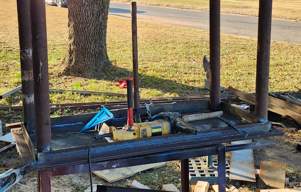 With, the plate cut, I started building a frame using 1/4" angle-iron.