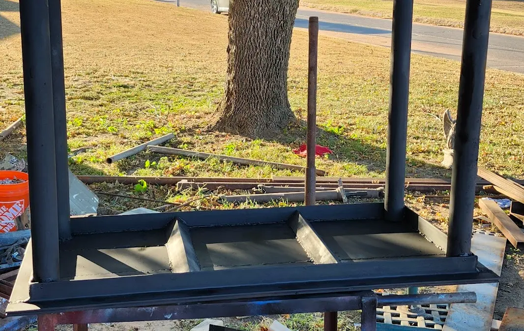 After the welding was done, I used flap-disks and my angle-grinder to smooth out the welds, and remove any remaining rust. I then added a coat of rustoleam rust-reformer primer.