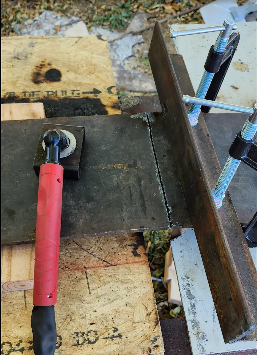 Since, I knew I had quite a few of these cuts to do, and drawing straight lines is hard, I did fabricate a small.... "guide" for my tig torch.