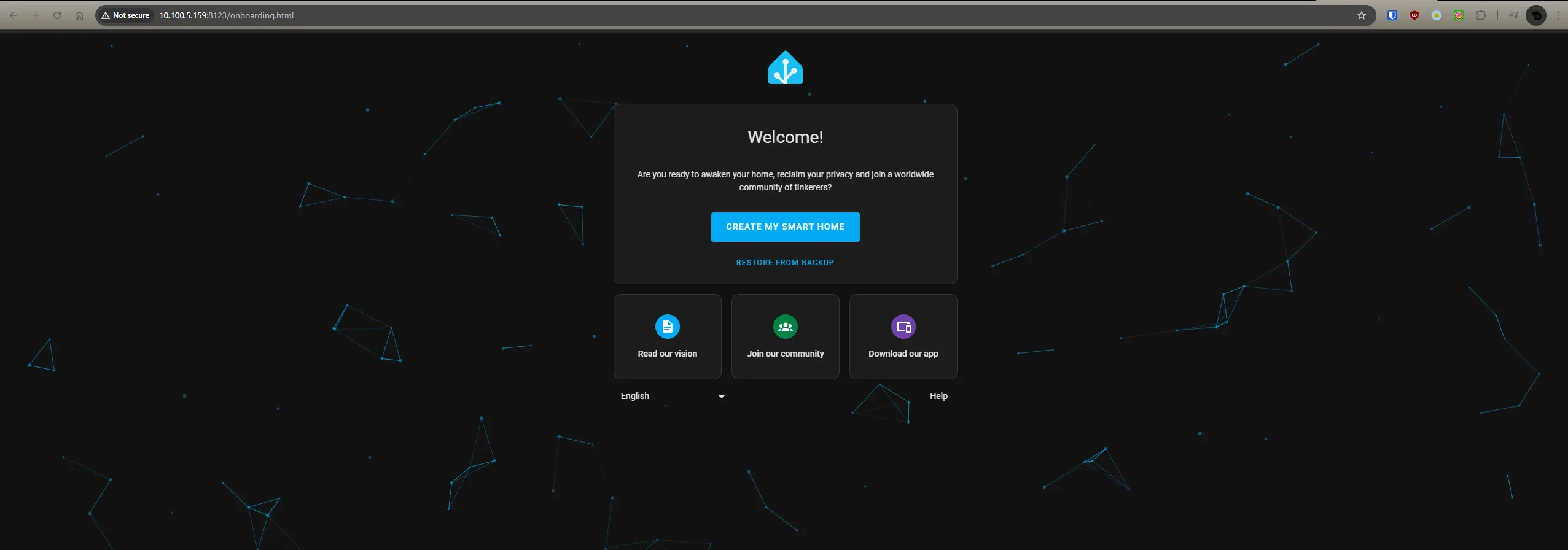 Home Assistant is running at: http://10.100.5.159:8123/