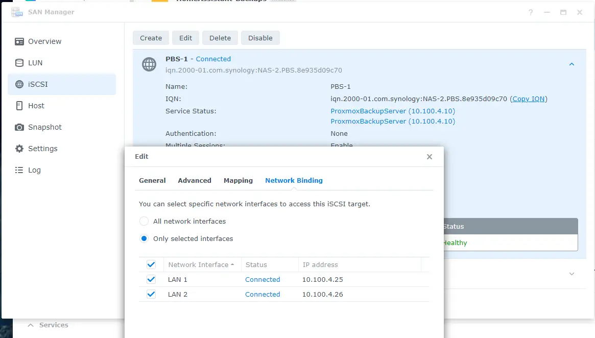 tcp: [1] 10.100.4.25:3260,1 iqn.2000-01.com.synology:NAS-2.PBS.8e935d09c70 (non-flash)