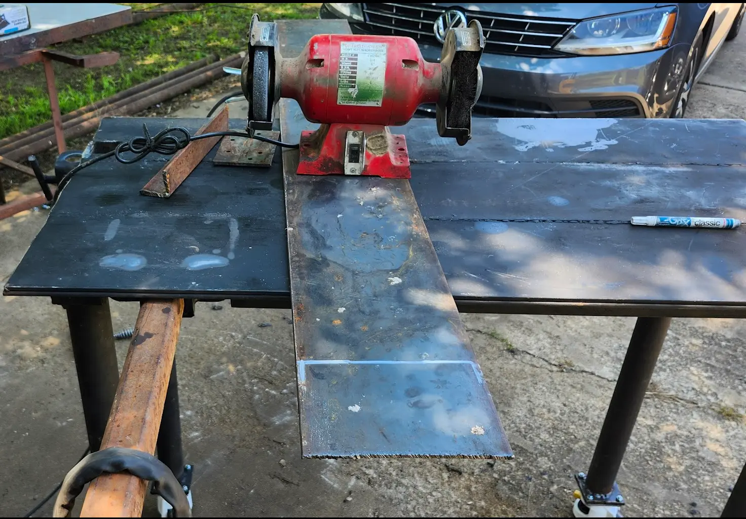 The grinders base was unbolted, and then a line was drawn where to cut the square tubing.
